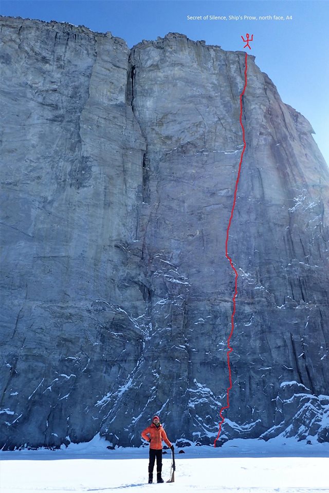 Ancora sull’isola di Baffin, Marek Raganowicz, dopo aver dovuto cedere all’inverno di Sam Ford Fiord, questa volta ha aperto, da solo e in artificiale, due big wall su Ship’s Prow a Scott Island, in Canada. MantraMandala (A3) e Secret of Silence (A4) sono due tracciati indipendenti. Il primo dei due segue una linea ripida sul versate est ed è stato aperto in un unico tentativo di 17 giorni, senza corde fisse. Pochi giorni dopo l’alpinista polacco si è diretto verso la parete nord e, utilizzando anche 4 tiri fissi, ha aperto Secret of Silence, in 13 giorni. In entrambe le aperture Raganowicz non ha forato la montagna per spit o rivet, non ha utilizzato bathook e ha utilizzato solo soste naturali.