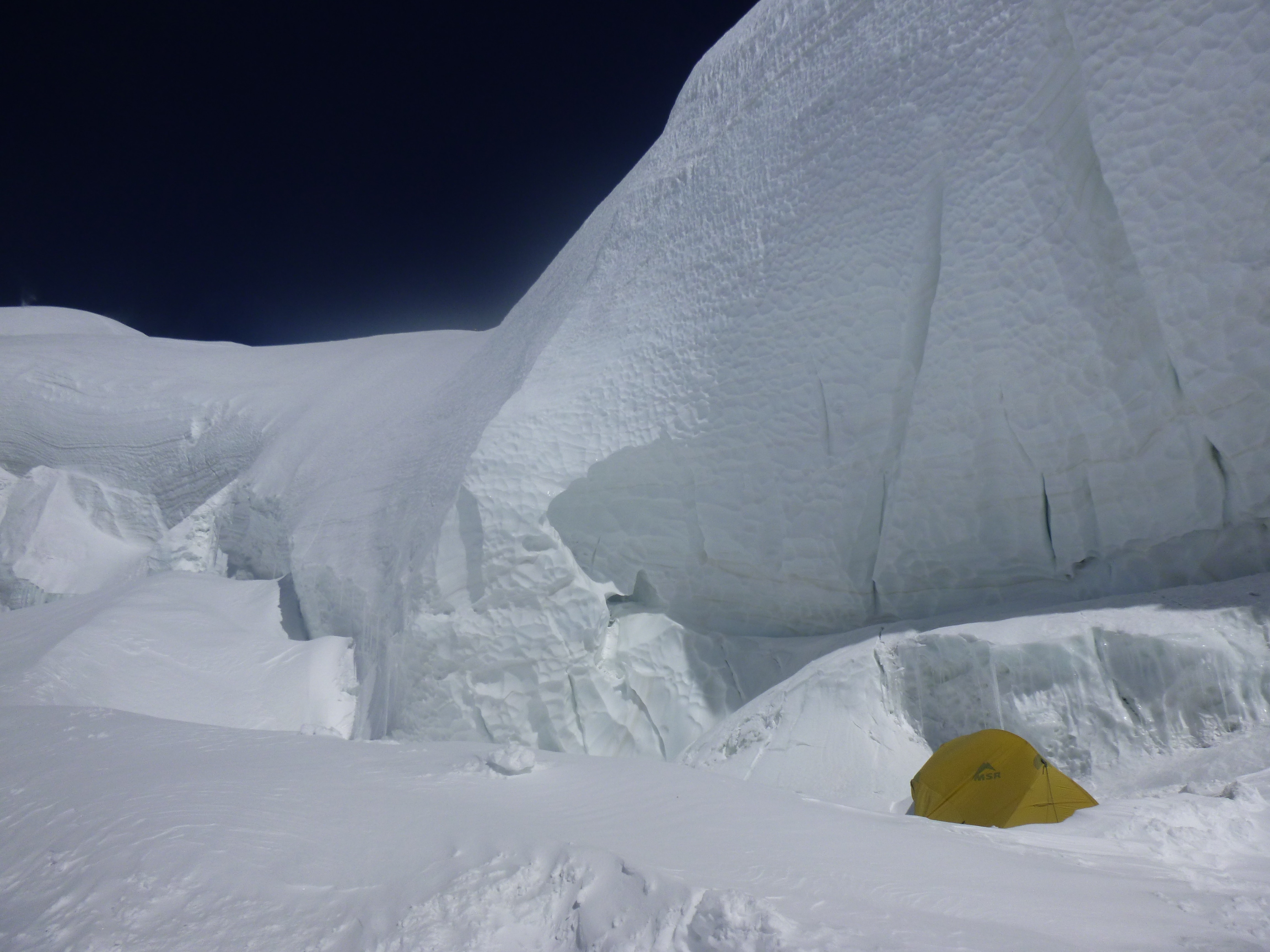 Nei giorni successivi arrivano anche un gruppo di tre canadesi, noi in realtà aspettavamo due rumeni, questi canadesi neanche li conosciamo. Hanno una tenda da 4, riescono a stare seduti e giocare a carte, quanto vorremmo avere in quel momento un pò di spazio in più anche noi in tenda; e poi ridono un sacco e sono felici e noi invece sudici e logorati dall’attesa. Tra due giorni è prevista una nuova giornata di bel tempo: è la nostra ultima occasione. Quella notte a partire per la vetta siamo solo noi e loro, loro alle 3 e noi questa volta decidiamo per le 5 appena inizia a fare chiaro.
