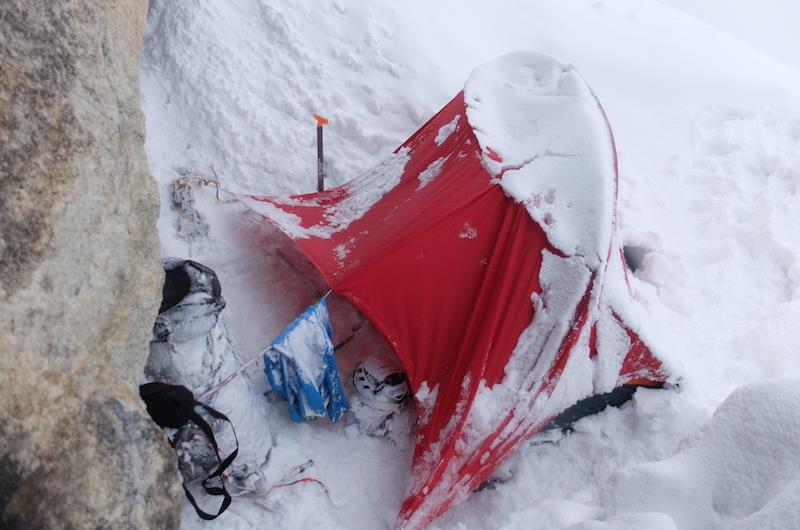 Esatto, un’altra difficoltà è stata il pericolo di caduta di valanghe e seracchi nei primi 1000 metri di parete. Essendo orientata a nord le creste erano piene di funghi di neve ed ogni tanto se ne staccava uno. Abbiamo cercato la linea più sicura, ma era una parete glaciale e non rocciosa e si era comunque molto esposti alla caduta di questi seracchi.