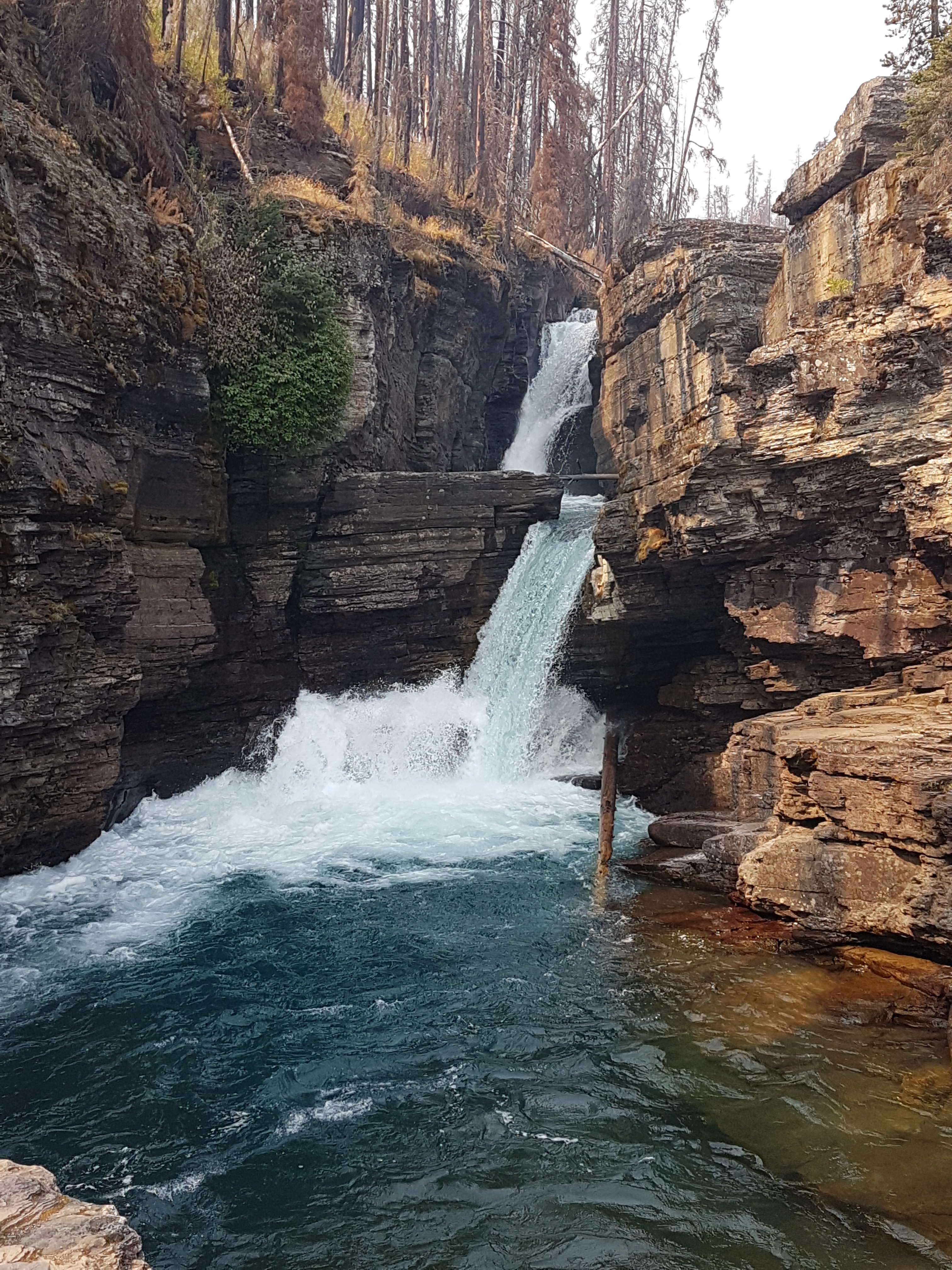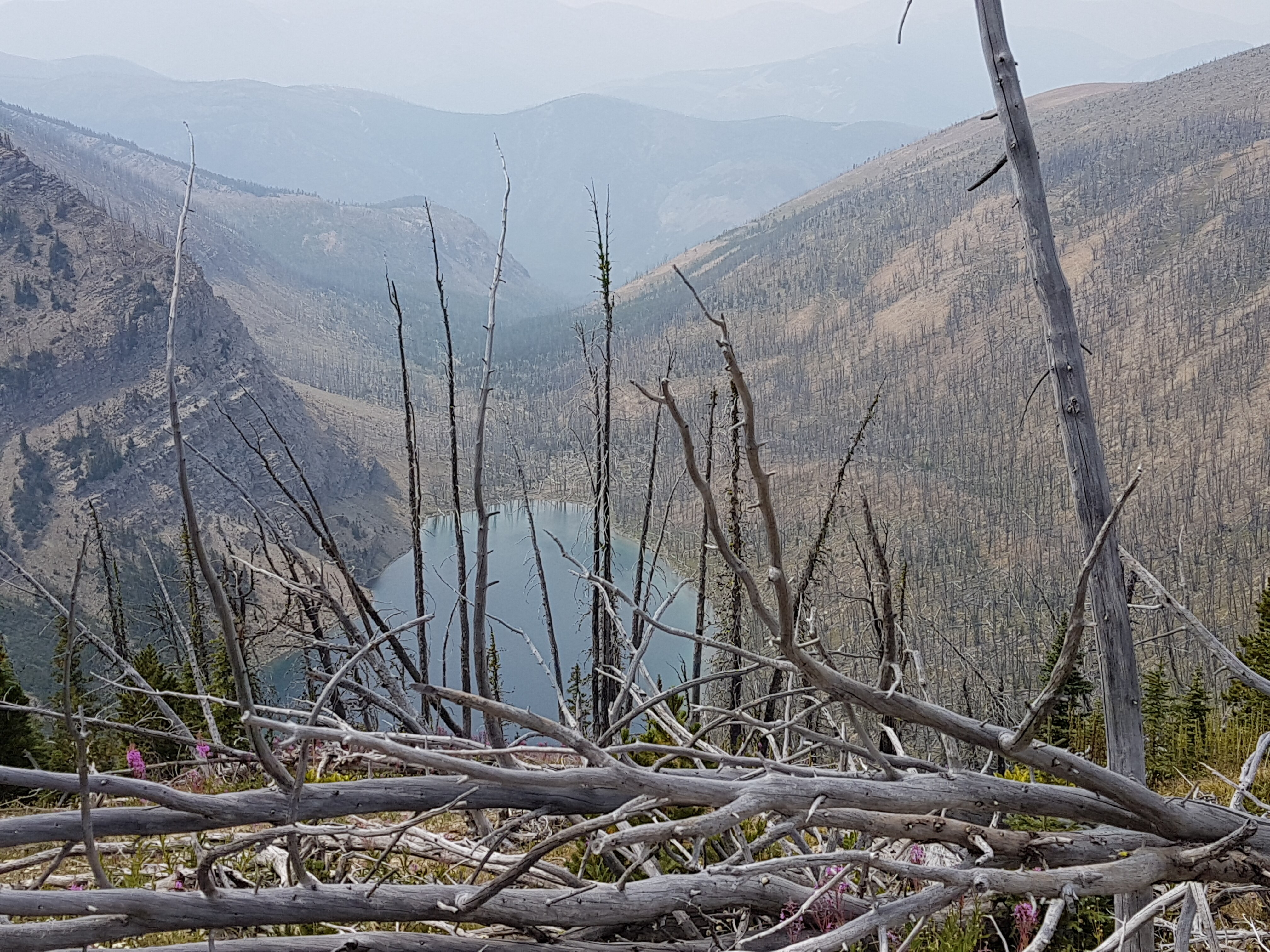 Questa prima parte è caratterizzata soprattutto da enormi estensioni di foreste di conifere: di alcune gli incendi hanno lasciato solo i tronchi grigi e duri che il vento fa vibrare con una diversità di suoni caratteristici, creando la colonna sonora ad un quadro diafano di natura morta. La principale montagna che caratterizza la Bob Marshall è la Chinese wall, una spettacolare parete rocciosa altra mediamente 300 mt e lunga 35 km che ci accompagna per due giorni di cammino.