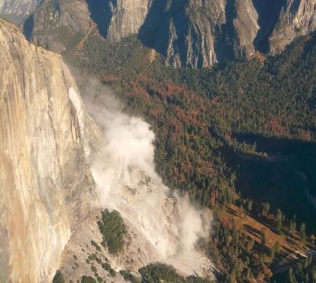 Ieri invece un’altra grossa frana si è staccata dalla sezione più a destra dell’imponente parete sud est. Al momento non sembra che ci siano persone coinvolte. Peter Zabrok ha fotografato, anche questa volta, il grande distacco. Il climber si trovava sulla via “Wall of Early Morning Light”, su Facebook ha spiegato che nel pomeriggio, a causa del caldo, il granito si espande causando tutti questi crolli.