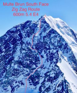 Il trio non ha tolto gli sci dai piedi ed ha messo a segno una nuova prima assoluta sulla parete sud del Malte Brun (3199 m). La nuova via, che ha preso il nome di “Zig-Zag”, è definita da Tom Gran la più tecnica che lui abbia mai sciato in Nuova Zelenda.