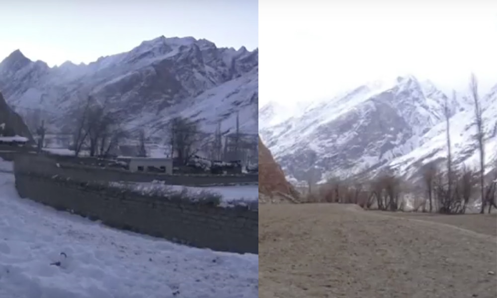 Questa volta porta avanti la sua posizione con un video postato da lui su youtube, che mostra alcune immagini comparative dei medesimi luoghi. Le prime foto sono scattate i primi giorni di gennaio, durante il trekking di avvicinamento al K2, e le seconde i primi giorni di marzo, quando l’alpinista russo è rientrato a Skardu. La differenza è evidente.