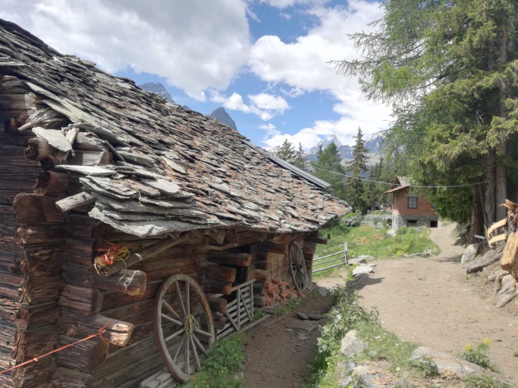 Da Mascognaz si prosegue comodi, senza molto dislivello, verso Crest e poi ancora in direzione di Soussun e infine del rifugio Ferraro. Giusto a monte dell’abitato di Saint Jacques il rifugio è costruito all’interno del villaggio Walser di Resy.