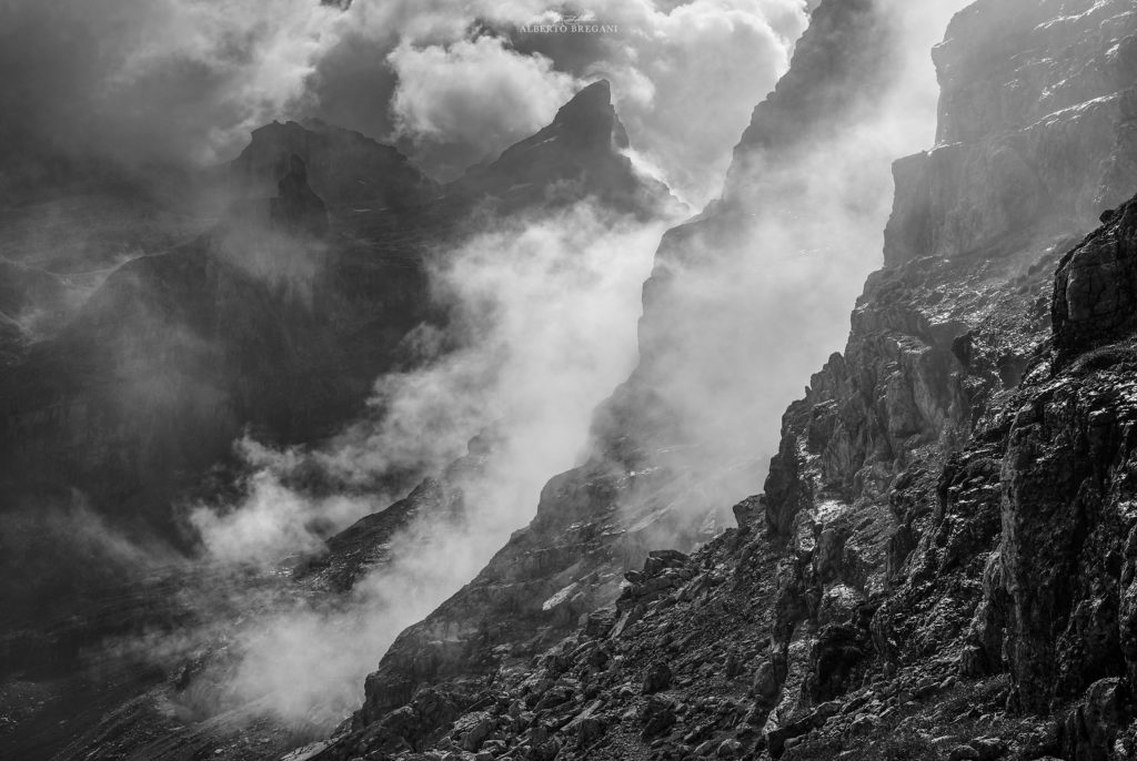 Un mio scatto difficilmente potrà stare su una rivista che tratta di montagna perché a fatica, come già detto, riesco a raccontare un luogo in modo didascalico, dove la fotografia “è” quel luogo. Io non ricerco la “descrizione”, ricerco invece una suggestione che l’osservatore poi possa raccogliere e fare sua. In molte mie foto a malapena si riconoscono le cime o la posizione geografica. Cerco di trasmettere il momento, quel che la montagna mi dice. E se non mi dice nulla non scatto. Questa è la mia filosofia, ed è anche quello che cerco di insegnare ai miei corsi di fotografia: imparare a vedere, ad attendere, a ricercare. Se necessario a non fotografare finchè non arrivi quell’ispirazione che, allora sì, ti guidi a raccontare qualcosa che sia veramente tuo.