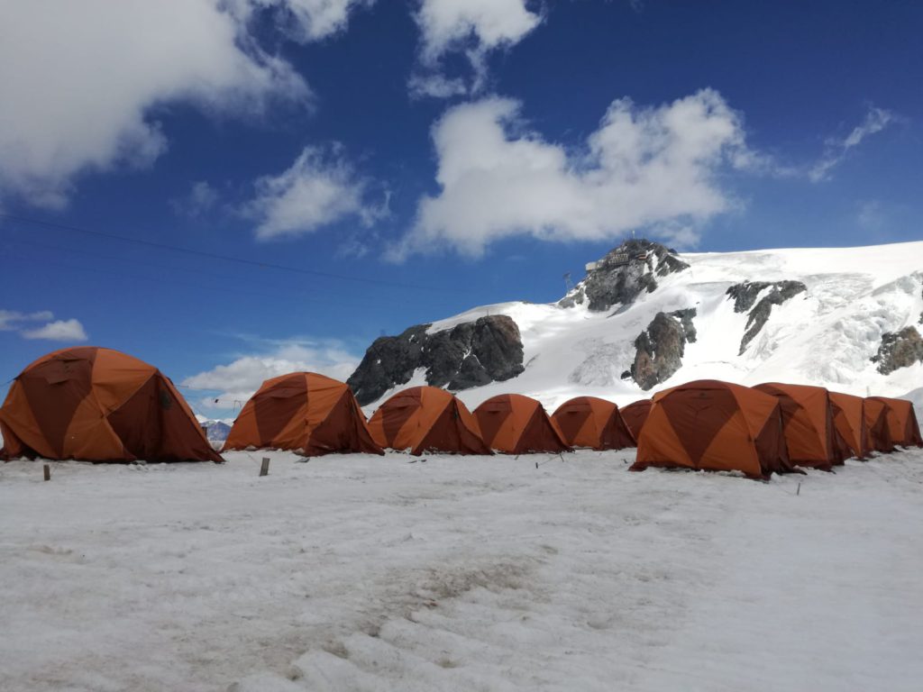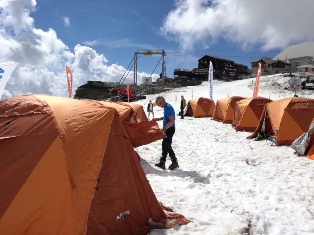 È iniziato il Montagne Outdoor Festival di Cervinia. È iniziato con la musica di Radio NumberOne e con l’inaugurazione del campo base targato Montagna.tv. Le tende sono già state occupate e la meteo promette bene. Tutti i partecipanti hanno già occupato i loro posti sul ghiacciaio del Plateau Rosa eccitati all’idea di trascorrere la notte in tenda, ma ancora più contenti ed euforici pensando a quel che li aspetta. Domani infatti lasceranno lo spiazzo ai piedi del rifugio Guide del Cervino per scalare il Breithorn Occidentale grazie all’aiuto delle guide alpine. Per alcuni un modo per avvicinarsi, in modo sicuro e divertente, alle grandi cime delle Alpi Occidentali. Per gli altri è invece un interessante modo per proseguire la loro scoperta alpinistica delle montagne italiane.