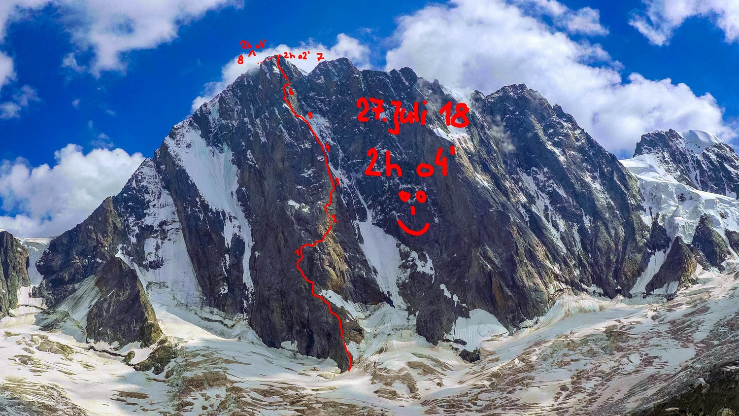 Con questo nuovo tempo sulle Grandes Jorasses, lo svizzero ha realizzato lo speed record su tutte e tre le grandi pareti nord della Alpi avendo già salito l’Eiger in 2 ore e 28 minuti (poi strappato nel 2015 da Ueli Steck) ed il Cervino in 1 ora e 46 minuti.