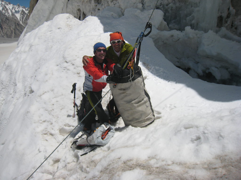 Abbiamo fatto il nostro paio di tentativi. Nel secondo siamo saliti circa fin dove sono saliti gli americani, poi siamo stati colti dal maltempo che ci ha bloccati per tre o quattro giorni, non ricordo più bene, in parete. Ricordo la neve che cadeva, e alla fine la scelta di rinunciare e rientrare a campo base.