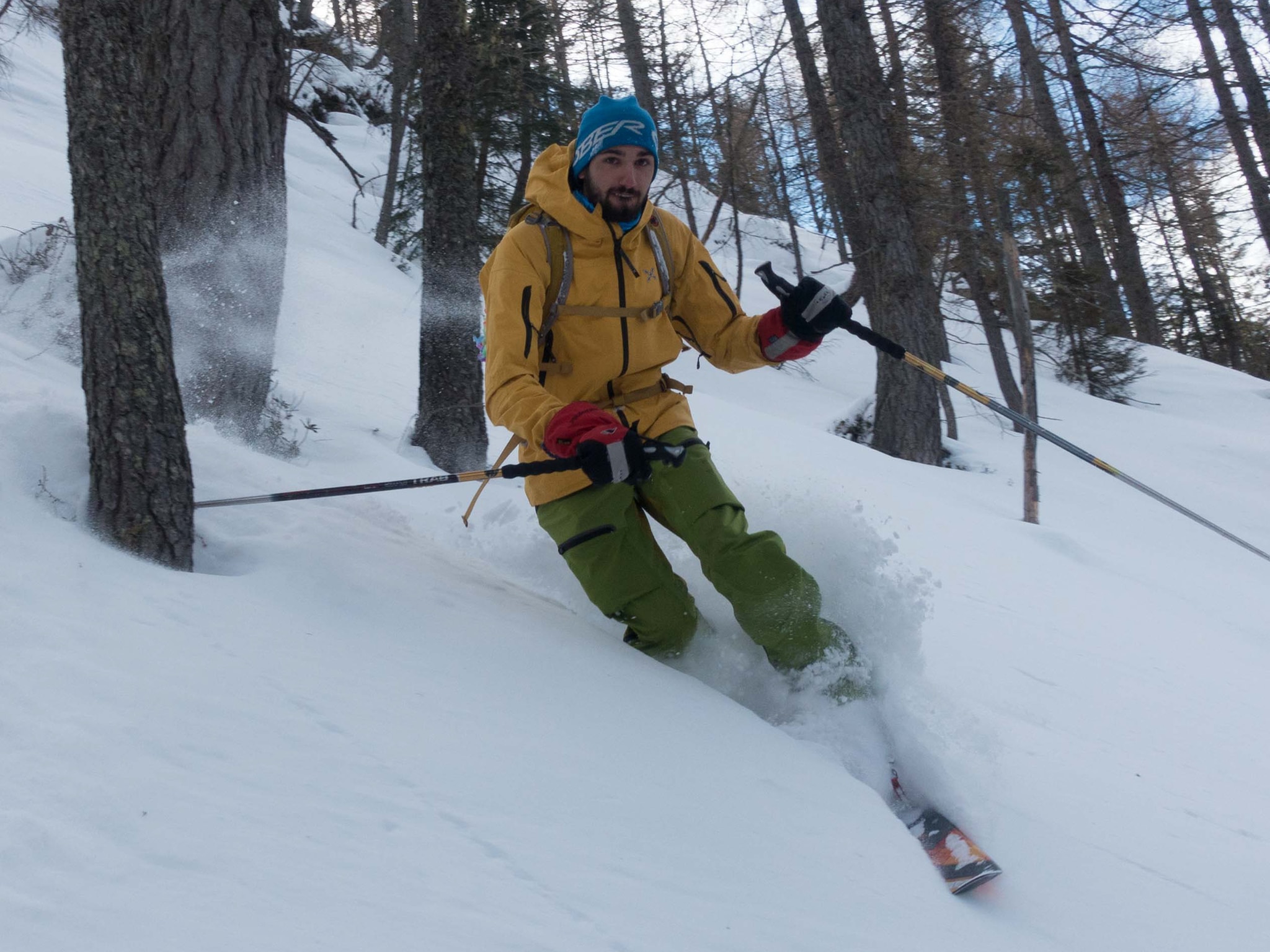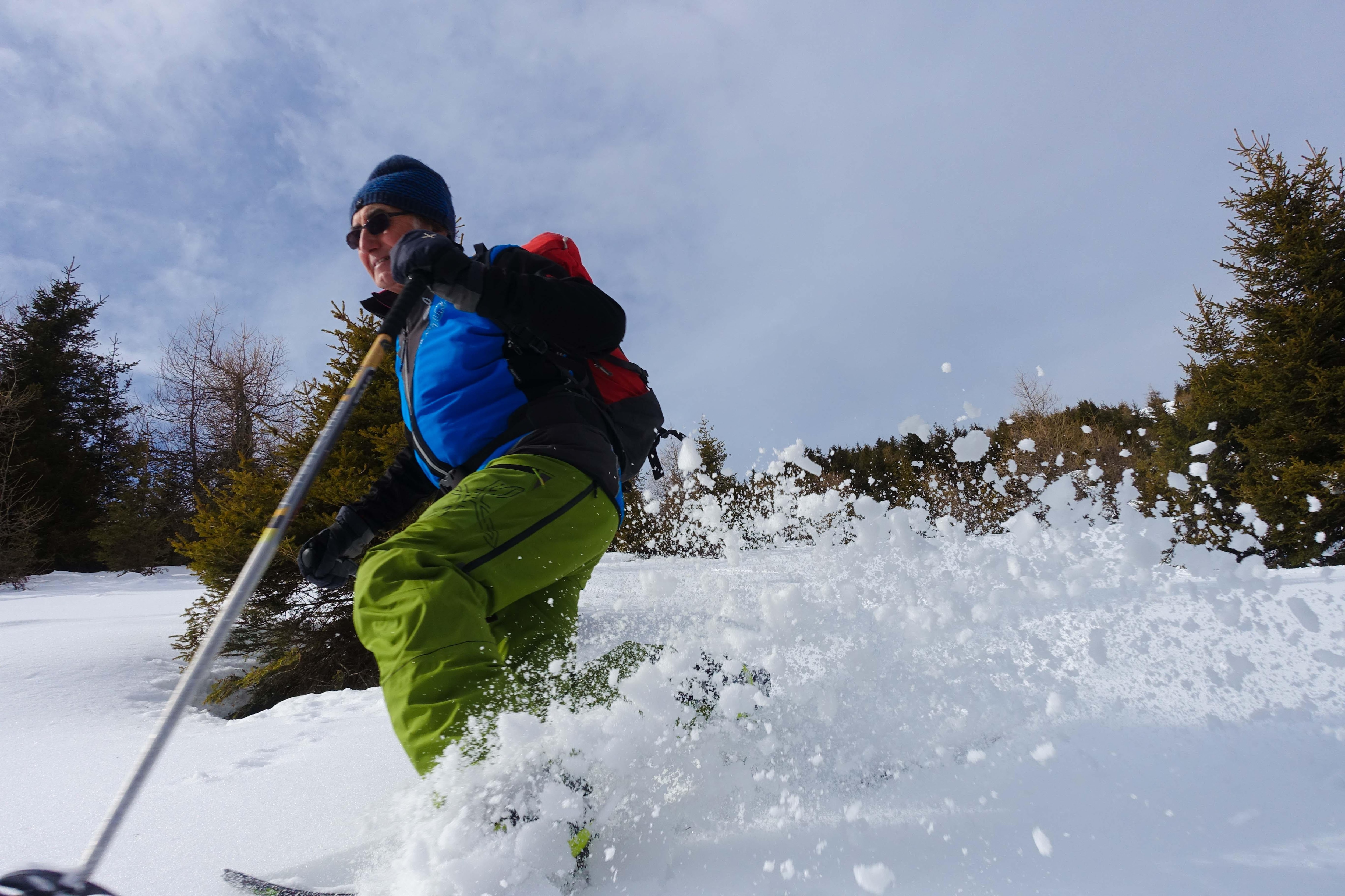 Giorgio. Dire che non mi piace la polvere sarebbe come cercare un modo per essere a tutti i costi originale (ride). Ovviamente se è vera polvere, se è bella, è piacere puro. Posso solo dire che purtroppo qui sulle nostre montagne è quasi diventata l’eccezione alla regola quindi, tutto sommato, preferisco partire in primavera con il bel tempo con la certezza (o quasi) di potermi fare una signora sciata sul firn. Il firn è facilissimo, divertentissimo e anche molto sicuro. Non posso negare che ho sempre più paura di valanghe o slavine, soprattutto quando devo fare un traverso su neve polverosa. Un tempo forse non me ne rendevo conto ed ero più spericolato, oggi però mi prende un senso di ansia pensando a quel che potrebbe accadere.