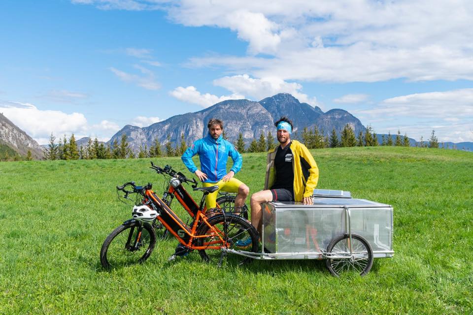 La scelta dell’e-bike si è resa dunque necessaria per restare nel limite massimo di 100 giorni, scelto per necessità, perché il lavoro aspetta a casa il loro ritorno. Oltre alle biciclette elettriche, che verranno alimentate a energia elettrica e solare attraverso pannelli fotovoltaici, il loro bagaglio sarà rappresentato da attrezzatura alpinistica, vestiti, materiale videofotografico, tende, fornelli, viveri, acqua, alloggiati in due carrelli.