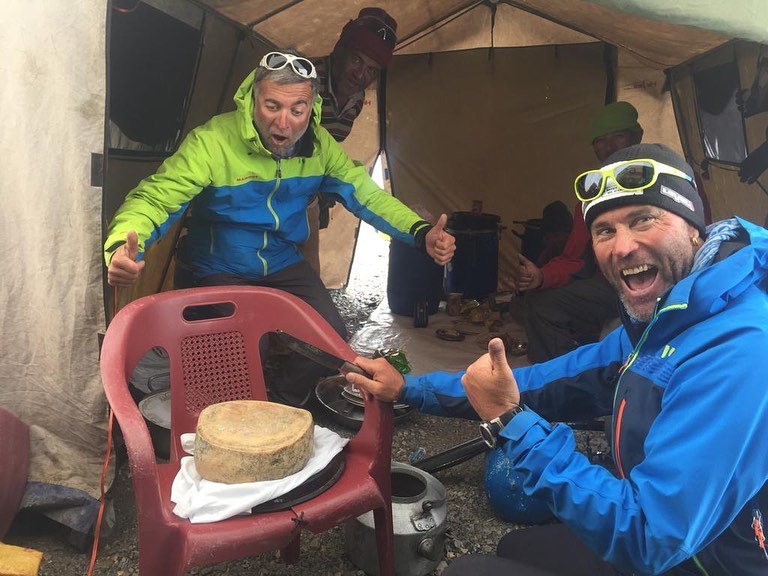 “Al campo ci sono parecchie spedizioni. Ho ritrovato anche Don Bowie, che fa parte di un’altra agenzia, ed è posizionato molto lontano rispetto a noi. Ho conosciuto con piacere e ammirazione mister Kim che lo scorso 7 luglio ha salito il G1 portando così la sua collezione a 13 Ottomila, gli manca solo il Broad Peak. Come in tutte le spedizioni ho portato con me un po’ di Valtellina (salame, formaggio, bresaola) e devo dire sempre molto molto apprezzata”.