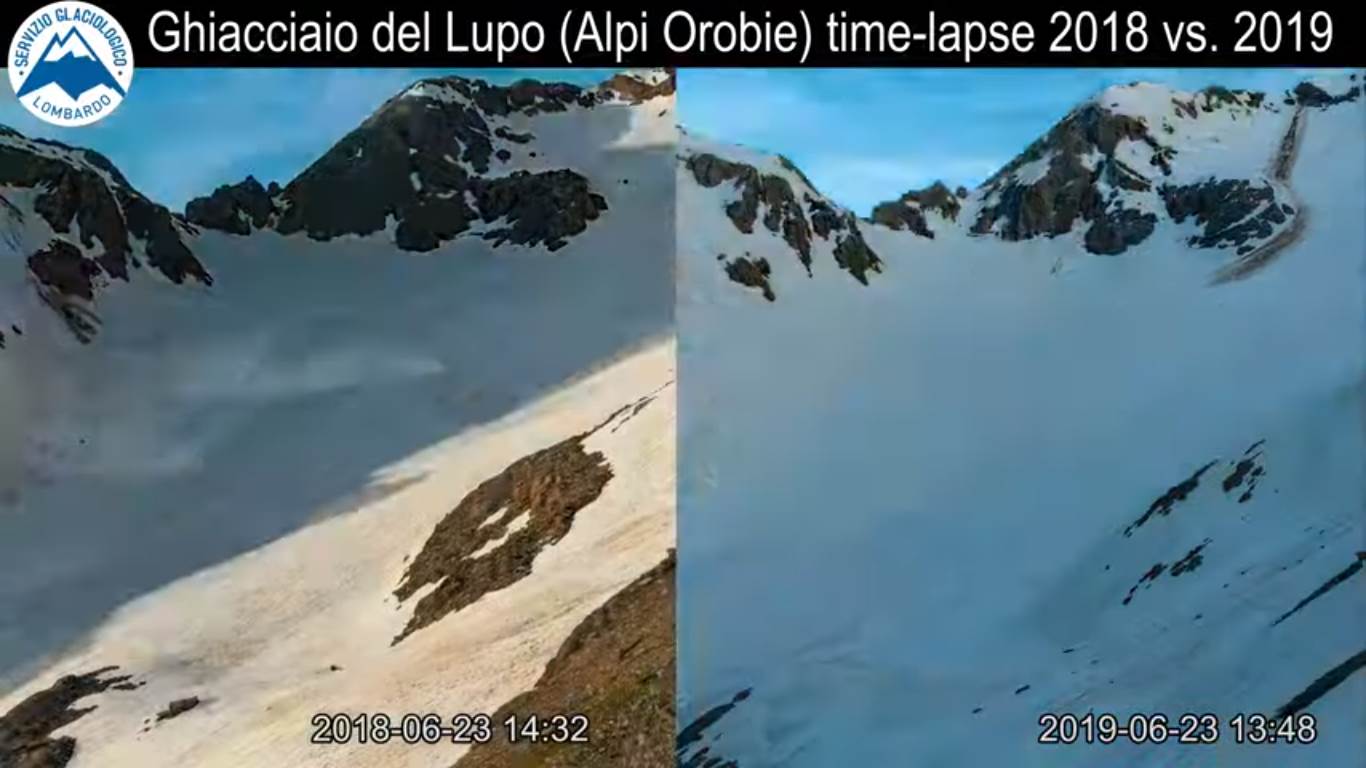 Estate 2018 vs estate 2019. Quale stagione ha inciso maggiormente sulla salute dei ghiacciai alpini? Una risposta parziale la fornisce lo splendido time-lapse diffuso sui social dal Servizio Glaciologico Lombardo negli scorsi giorni. Un video che mostra a confronto le fasi di scioglimento della neve nelle due estati sul ghiacciaio del Lupo, nelle Orobie valtellinesi.