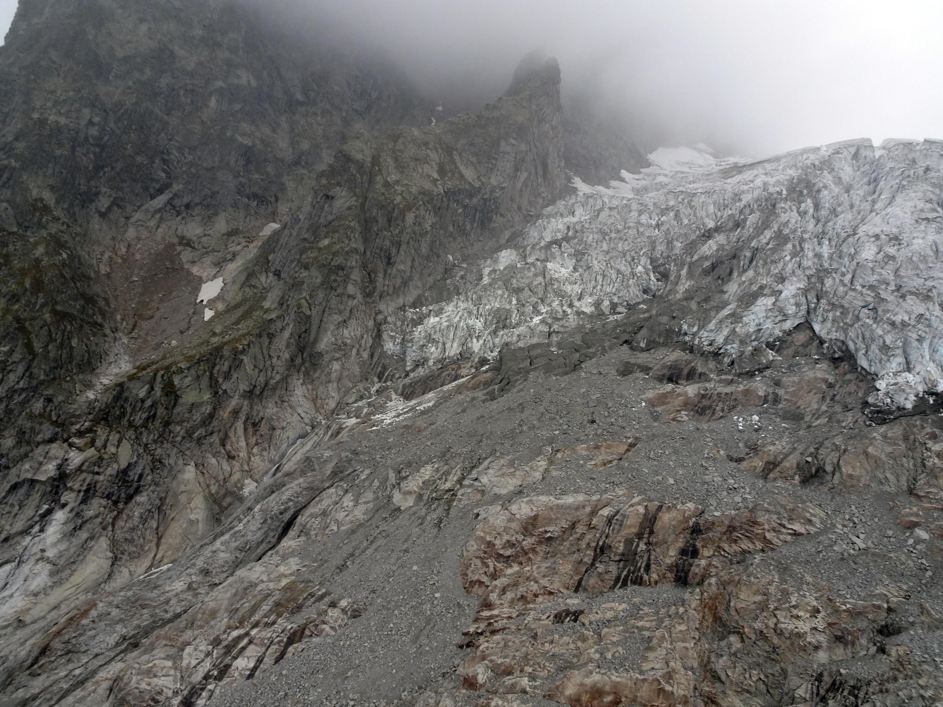 Ghiacciaio Planpincieux. Una porzione del blocco frontale accelera a 60 cm al giorno