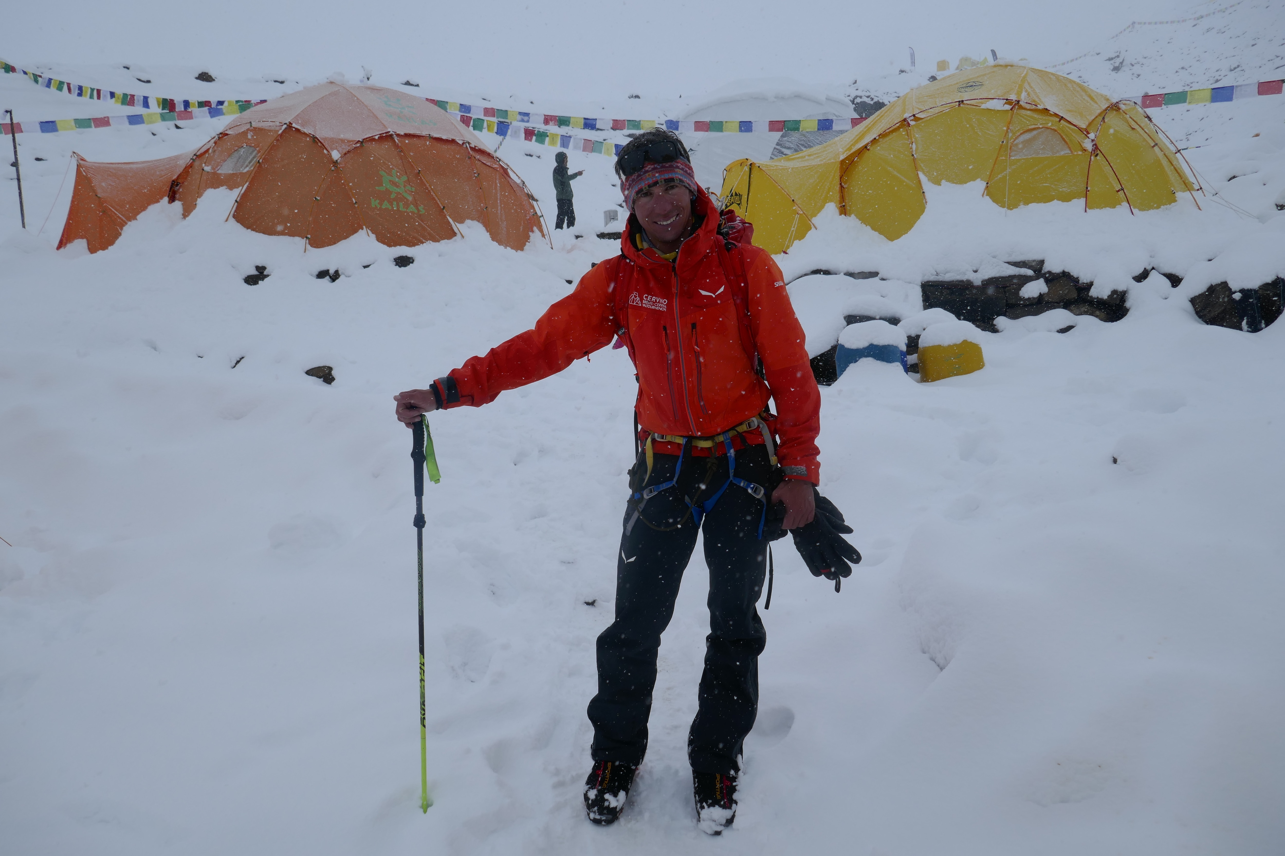 “L’arrivo a campo base è stato complicato. Da campo 2 a scendere ha iniziato a piovere quindi sono arrivato bagnato fradicio, così la prima cosa che ho fatto è stata entrare nella tenda cucina. Qui c’è stato un momento divertente perché il cuoco e gli altri ragazzi non si aspettavano di vedermi già di ritorno, con la vetta in tasca. Mi hanno guardato un po’ straniti, poi è iniziata la festa. Anche se i veri festeggiamenti sono partiti quando tutti hanno raggiunto il campo base e mi sono riunito a Marco, Andreas, Francesco e Emrik.”