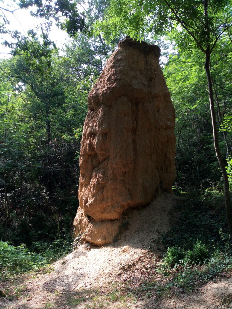 Abbiamo quindi tre strati: uno di terreno sovrastato da grossi blocchi sparsi e, sopra tutto, il torrente che scorre. Una situazione stazionaria improvvisamente scombussolata dai grossi movimenti tettonici del Pleistocene superiore che hanno innalzato il livello del terreno portando il Faussimagna a scorrere più in basso. L’acqua che nel tempo aveva arrotondato e levigato, con la sua forza, i grossi massi rocciosi ha lasciato campo aperto agli agenti atmosferici (pioggia, neve, grandine, vento) i quali hanno dato vita a una veloce erosione del suolo. Una forza erosiva che ha portato facilmente via il terreno poco coerente dei versanti della montagna mentre quello che si trovava sotto i massi rocciosi è stato protetto da questi ultimi. Il risultato è quello che si vede ancora oggi: colonne di terra sovrastate e protette da grossi massi erratici.
