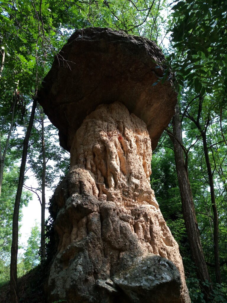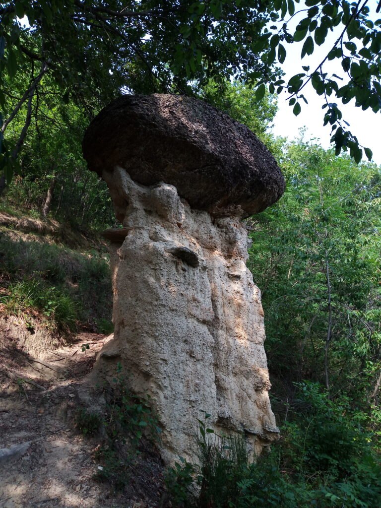 Vere e proprio opere d’arte naturali dalla suggestiva forma a fungo gigante, il cui gambo è costituito da una colonna di terra e pietrisco compatti sovrastato da un cappello formato da un enorme masso di gneiss. Una forma volendo buffa che li ha fatti soprannominare dai locali “Ciciu”, in piemontese fantoccio, pupazzo.
