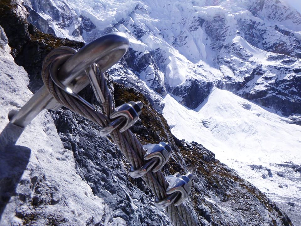 La preoccupazione fondamentale, quando ti rechi in queste zone e vedi ragazzi sui 20 anni impegnati a trasportare decine di chili di materiale su percorsi pericolosi, è che non si facciano male. Basti pensare che la parte superiore della parete lungo cui corre la ferrata è chiamata ‘la bomba’. In tanti sono morti lassù. Viene spontaneo pensare di fare qualcosa per agevolare il loro lavoro”.
