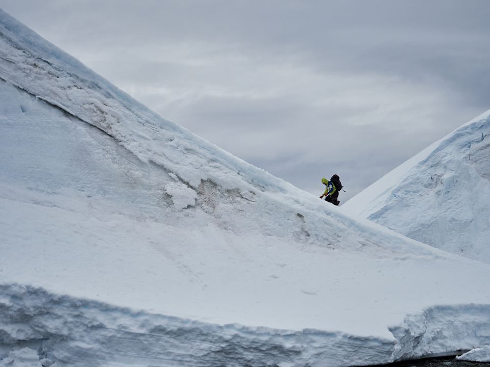 Finalmente vediamo Alex in versione alpinista, alle prese con la salita dello Spigot peak. “Andiamo alla baia di Orna. Lì ci sembrano apparire delle balene, le loro forme in superficie. La nostra gioia è grande quanto i loro corpi giganteschi. Saliamo sullo Spigot Peak, una prominente forma rocciosa che ci avvicina ancora di più allo spettacolo dell’Antartide. Sembra di essere in un altro mondo. È incredibile”.