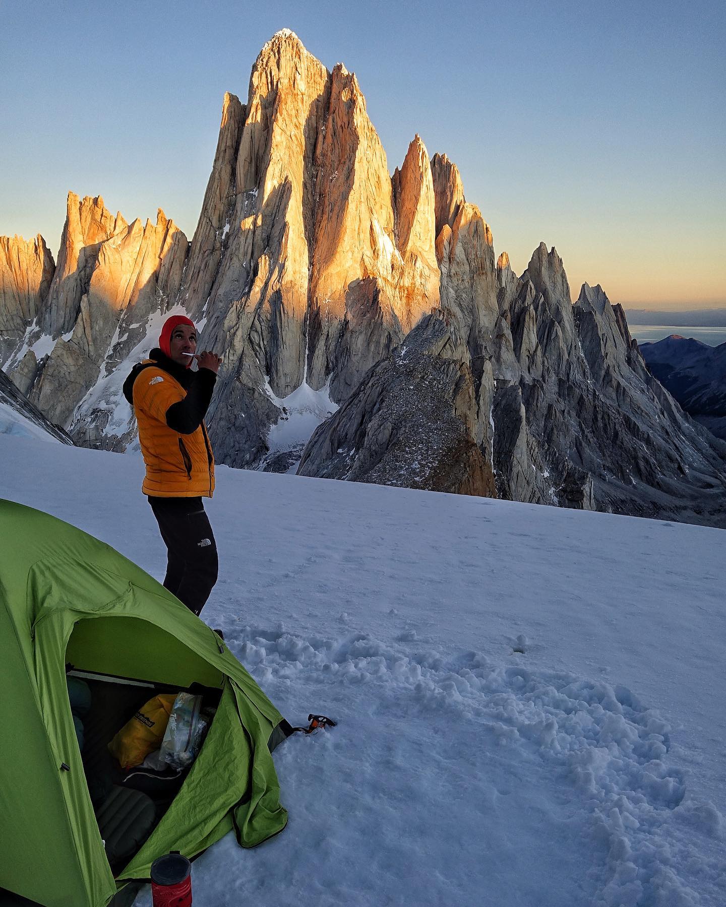 Partiti con condizioni meteo sfavorevoli nei primi due giorni sono riusciti a fare abbastanza poco, hanno quindi dovuto sfruttare a pieno gli altri due giorni che avevano a disposizione per completare il progetto. In tutto questo tempo “non abbiamo mai indossato una volta le scarpe da roccia, che avevamo con noi ed entrambi abbiamo concluso l’avventura con i piedi doloranti avendo spesso dovuto usare la parte frontale dello scarpone”, soprattutto sul Piergiorgio dove i due se la sono dovuta vedere con le pendenze ghiacciate del versante est fino a raggiungere la vetta della montagna. “La nostra è stata la terza salita del Piergiorgio” spiega Haley. “Un fatto straordinario se si pensa che il Piergiorgio è una delle cime più importanti della Patagonia, ma normale quando si prova la durezza degli ultimi tiri, giusto prima della vetta”.