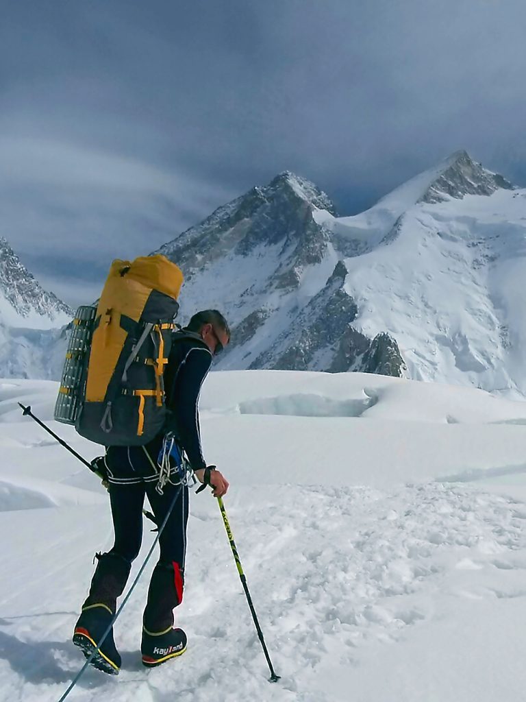 Nell’estate 2019 scala dapprima il Gasherbrum II lungo la via normale. Quindi vi torna in vetta tracciando una nuova linea che sceglie di chiamare “honeymoon”, una diretta alla tredicesima montagna del Pianeta che l’alpinista avrebbe dovuto aprire insieme alla sua compagna Maria Pipi Cardell purtroppo bloccata a campo base da un problema fisico.