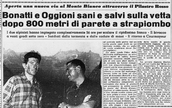 Bonatti e Oggioni sul Pilastro Rosso di Brouillard