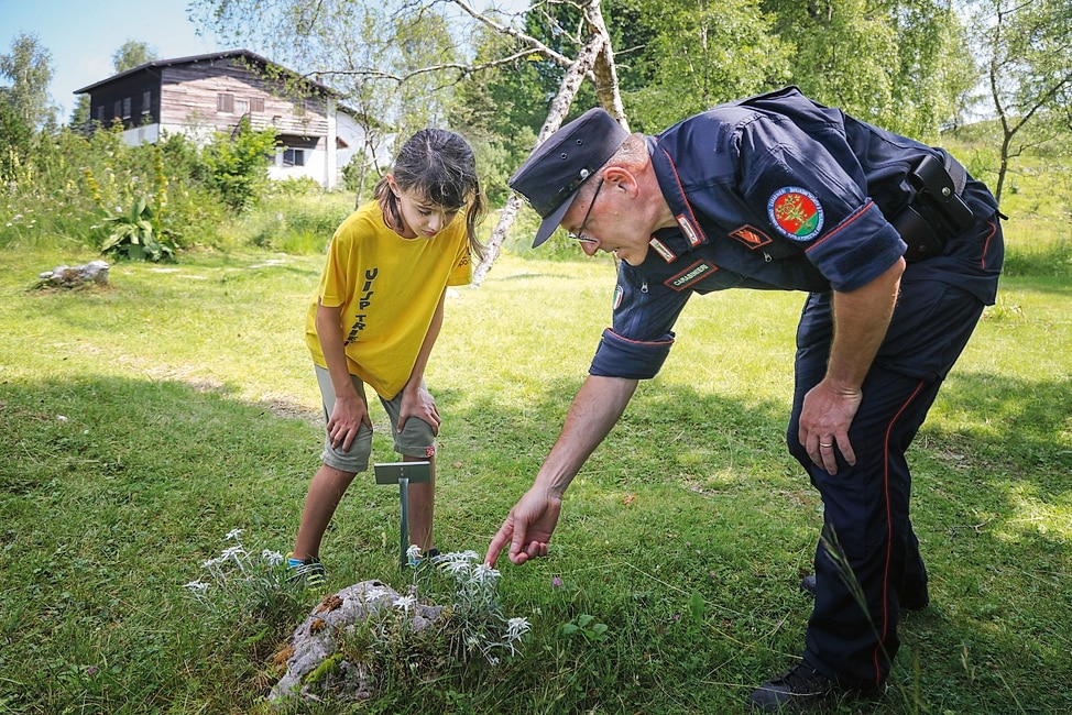Per quanto riguarda la fauna selvatica, il parco rimane un luogo assolutamente ospitale dove dimorano oltre cento specie di uccelli nidificanti, nove coppie di aquile reali e moltissimi altri rapaci, oltre a numerosi anfibi e rettili (tra cui quattro specie di vipere). Anche un branco di lupi di recente formazione si aggira per il parco. Ma, come ci racconta Gianni Poloniato, responsabile del Servizio gestione del territorio, «fino a ora ci sono state pochissime predazioni a carico del bestiame di malga, data la massiccia presenza di selvaggina. Abbiamo comunque distribuito reti antilupo, anche se solo una malga su sette si è dotata di cani maremmani». Come rivelano i puntuali monitoraggi effettuati dal Raggruppamento per la biodiversità dei carabinieri forestali, con il cambiamento climatico è in corso però una lenta risalita di alcune specie verso le selle nivali e le zone apicali. «Queste specie rischiano di sparire se la temperatura media stagionale dovesse alzarsi ancora» spiega Poloniato. «Per esempio la pernice bianca è in forte diminuzione, perché non trova più ambienti innevati dove soggiornare e mimetizzarsi. Così pure numerose specie floristiche, come le genziane nivali, i non ti scordar di me nani, il genepì del Monte Talvena… Per alcune specie preglaciali rare ci sono progetti di reintroduzione, così come è stata felicemente reintrodotta la marmotta alcuni anni fa, che oggi risulta ben ambientata e costituisce la preda ideale per l’aquila reale».