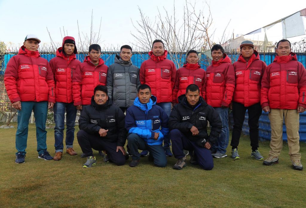 Il team tutto nepalese di Mingma Gyalje Sherpa è arrivato a Skardu il 12 dicembre, per poi dirigersi ad Askole. Il termine del trekking dovrebbe essere il 20 o il 21 dicembre. La novità è che Mingma G. Sherpa ha dichiarato sui suoi social che scalerà seguendo sia il calendario astronomico delle stagioni (21 dicembre- 21 marzo), che quello meteorologico (1° dicembre-28 febbraio). Il suo permesso termina il 30 marzo.