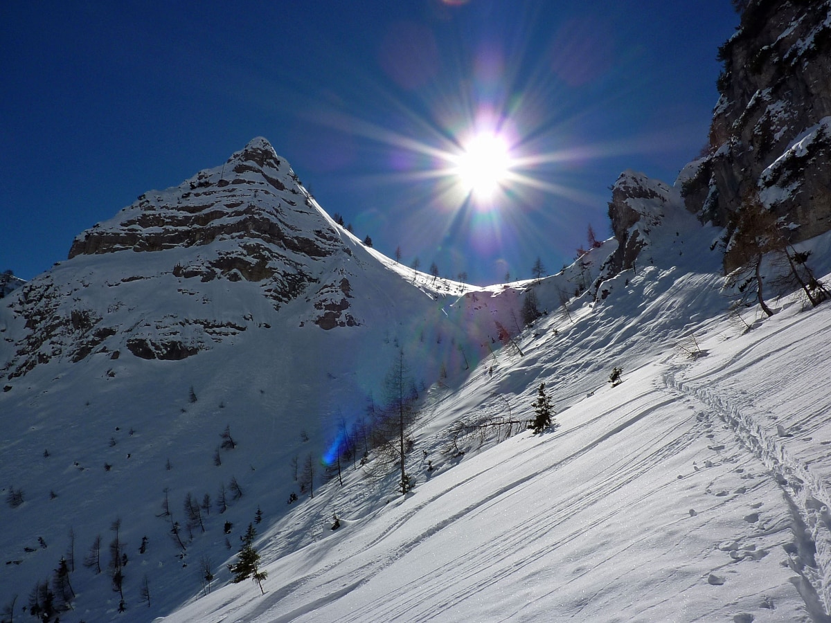 La guida alpina Roberto Misseroni, originario della Val di Sole, suggerisce una gita di scialpinismo verso il Monte Sole, in Val di Rabbi. “La Val Cercen è bella, e a portata di mano da Rabbi Fonti. La strada che sale a Malga Monte Sole è comoda e può essere seguita con le ciaspole. Se la Malga è aperta, e la strada è battuta, si può salire a piedi e scendere con lo slittino”. “Il pendio che sale dalla Malga al Monte Sole è aperto e facile, senza via obbligata, ed è raro che ci sia pericolo di slavine. A chi cerca un itinerario più impegnativo suggerisco di salire da est, toccando Malga Fratte Alta. E’ il percorso della Ski Alp, una classica gara di scialpinismo. Il terreno è più ripido, e se c’è molta neve bisogna sapersi orientare”.