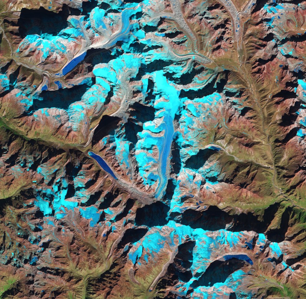 Le immagini in false-color del NASA Earth Observatory, realizzate da Lauren Dauphin a partire dai dati Landsat data dello U.S. Geological Survey, mostrano in particolare alcuni dei ghiacciai della regione dell’Everest. Quelli della zona di Nanpa La e Nup La (nell’area del Cho Oyu), circa 50 km a Nord Ovest rispetto al Tetto del Mondo, e il Rolwaling Glacier, a 20 km Sud rispetto a Nanpa La.