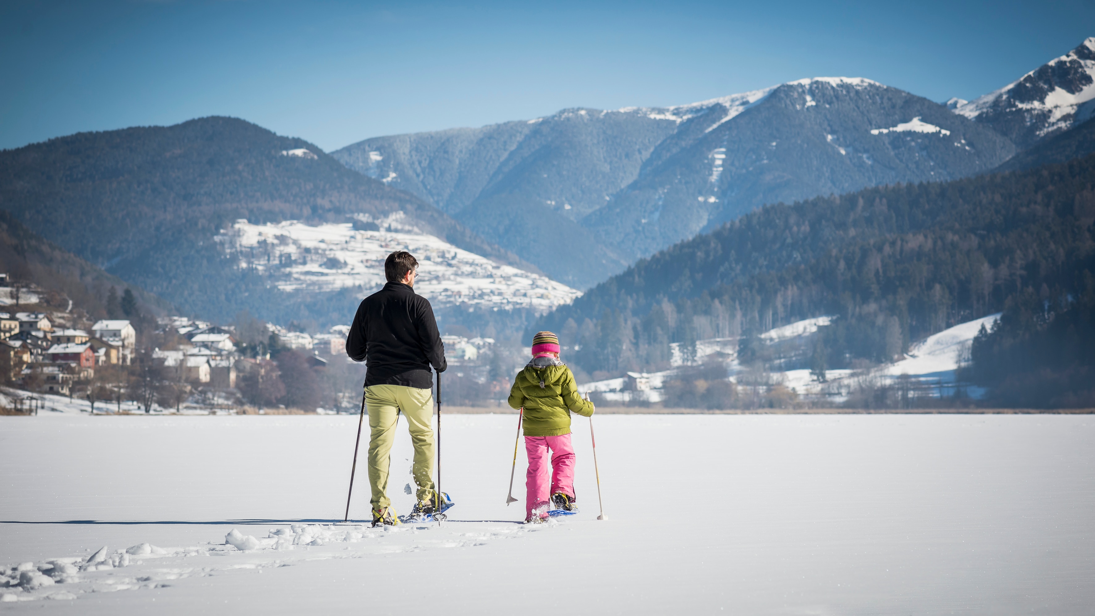 Descrizione: percorso amato da grandi e piccini per la fattibilità e il contesto suggestivo in cui si svolge. La Cròs del Cùc è raggiungibile in circa un’ora e mezza di cammino con le ciaspole. Il punto di partenza è un comodo parcheggio sterrato, vicino a un parco giochi immerso nel bosco, che si trova a monte del paese di Bedollo, poco dopo il ristorante Baita Alpina. Al crocevia con il sentiero che porta al “capitel del Franz”, si seguono le indicazioni per “Cròs del Cuc”. L’intero percorso è su comoda strada sterrata, in dolce salita. Il punto di arrivo è segnato da una maestosa croce e dalla radura che permette una vista ottimale sugli specchi ghiacciati dei laghi delle Piazze e Serraia. A sinistra della croce si può ammirare parte della Catena del Lagorai e sulla destra si distinguono i terrazzamenti della Valle di Cembra. Grazie al cartello con la mappa panoramica, sullo sfondo si possono riconoscere anche la Paganella, il Monte Bondone e il Monte Fravort. Rientro per lo stesso itinerario.