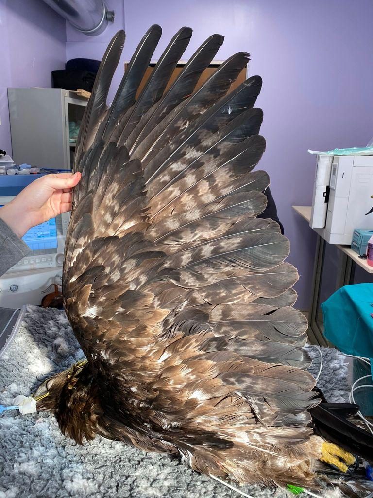 Dopo essere stata messa in sicurezza, l’aquila è stata trasportata dal veterinario Michel Mottini alla Casa di Cura Veterinaria Mont Emilius, convenzionata con la Regione Autonoma Valle d’Aosta per questo genere di interventi, dove è stata operata il giorno successivo per ricucire la ferita e per svolgere esami di accertamento.