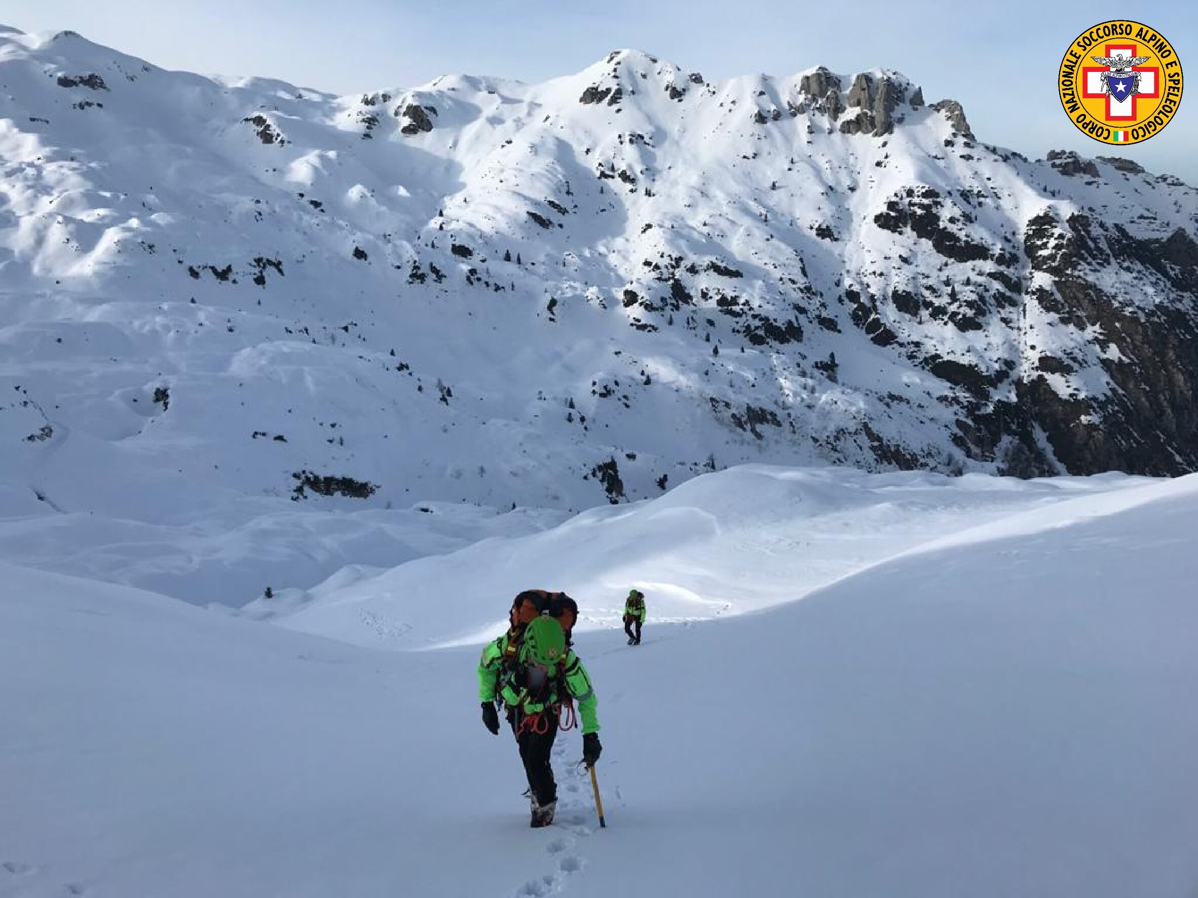 Poco dopo, l’individuazione del corpo senza vita di G.M., 55 anni, di Santa Giustina (BL), precipitato, forse a causa di una scivolata sulla neve, 200 metri di dislivello sotto il Passo, e caduto per un centinaio di metri, finendo sulla traccia del sentiero sottostante.