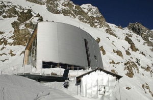 L’involucro esterno è costituito da pannelli in inox, capaci di resistere a venti di 240 km orari e alle forti escursioni termiche, sopra i quali sono montati pannelli fotovoltaici e solari che producono il 20% del fabbisogno di energia elettrica e l’80% di quella termica tramite un impianto a biomassa. Un sistema combinato consente di recuperare al 100% le acque reflue. La struttura interna è realizzata secondo i principi costruttivi delle case passive, con pannelli isolanti di fibra di legno riciclato, fatti arrivare dal vicino comune di Saint Gervais per ridurre l’impatto ambientale.