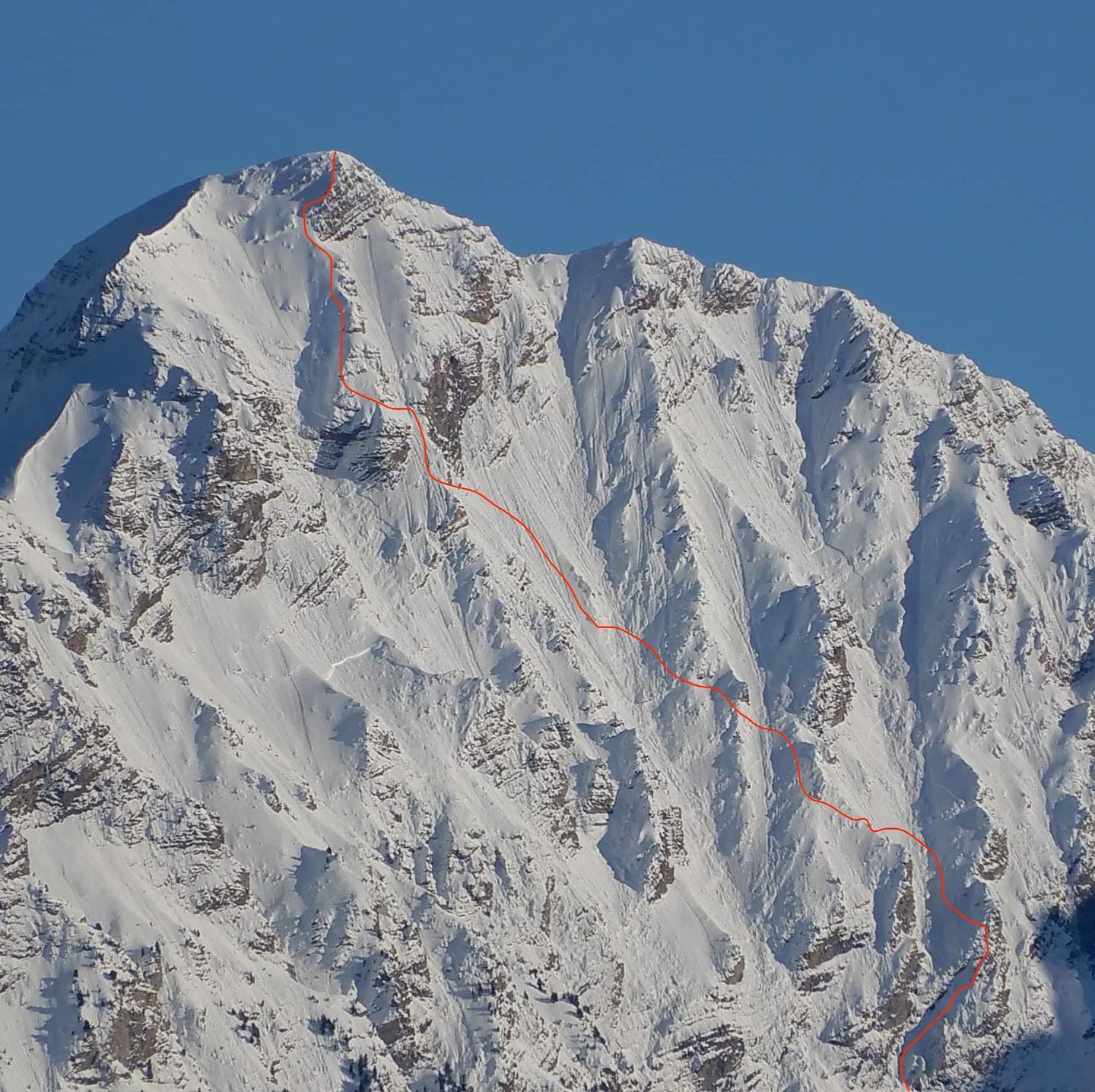 “In considerazione delle numerose sezioni brevi a 55° e qualcuna lunga attorno ai 50°, propongo un grado 5.4/E4, naturalmente da confermare – aggiunge il francese – . Dopo aver individuato la parete su una carta lo scorso autunno, una foto del mio amico Jean-pat Comba (guida d’alta montagna delle Hautes-Alpes, ndr) mi ha confermato che tale versante fosse sontuoso. Sono dovuto tornare tre volte prima di trovare le condizioni di stabilità sufficiente per tentare la discesa con gli sci”.