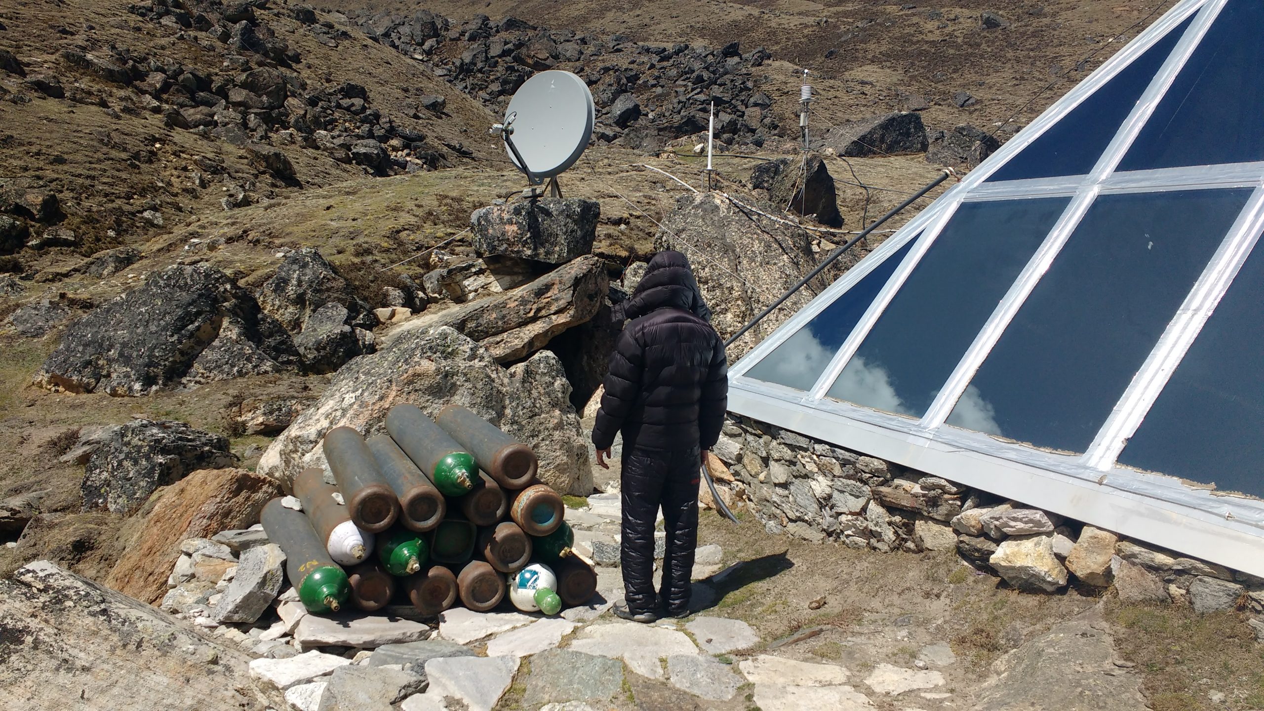 Da oramai sei anni, cioè da quando mancano i fondi, Kaji è di fatto il manager tecnico locale e l’indispensabile guardiano della Piramide. Da allora ha passato tantissimo tempo al Laboratorio sacrificando la sua vita e quella della sua famiglia: ha sentito questa come la sua missione e noi lo supportiamo il più possibile. Quando ci scriviamo, sentiamo e vediamo via internet mi chiama “brother Peter“, fratello Pietro, ma quando deve esprimersi in modo ufficiale divento “Peter Sir”, Signor Pietro. Ci sono periodi in cui non vede nessuno oltre al suo aiutante, collaboratore e cuoco e allora mi scrive ironicamente “Ramri Baini chhoina”, niente belle ragazze, ma sicuramente arriva qualche yak che viene sempre per i rifiuti alimentari della cucina.