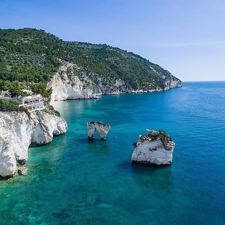 Un itinerario che vi sconsigliamo di affrontare in piena estate, per il caldo eccessivo che si può patire sulla costa pugliere, è il Sentiero Natura Mergoli-Vignanotica. Meglio optare per inizio e fine stagione. Si tratta di un suggestivo percorso di soli 2,4 km per un dislivello di 140 metri che collega due tra le spiagge più belle del Gargano. Da un lato la Baia delle Zagare, o Baia dei Mergoli, caratterizzata da alte scogliere bianche e di 2 magnifici faraglioni di roccia calcarea scolpiti dal vento, nel territorio di Mattinata, a quasi 30 km da Vieste. Dall’altra la Baia di Vignanotica.