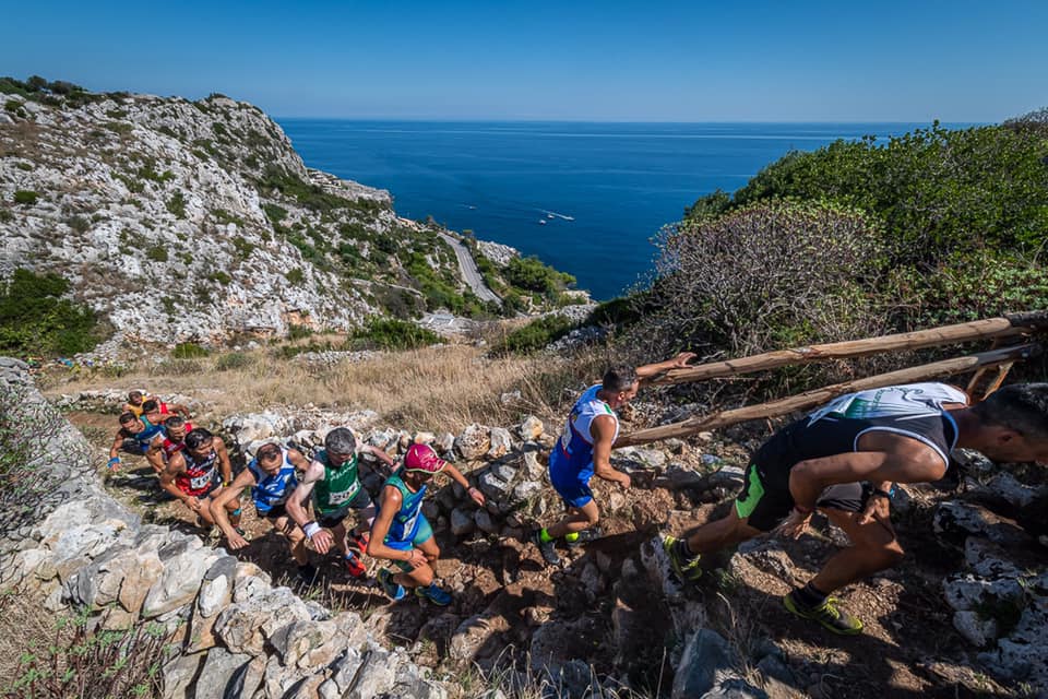 Una sfida salentina che si correrà su tratturi antichi che si inerpicano tra le rocce del Fiordo Marino del Ciolo, a strapiombo nel mare pugliese. Un percorso entusiasmante e molto tecnico, tra natura incontaminata e storia. Si parte dal mare e si sale al suggestivo borgo di Gagliano del Capo (4550 metri di lunghezza per 264 m di dislivello positivo), con possibilità anche di rituffarsi in discesa verso la costa.