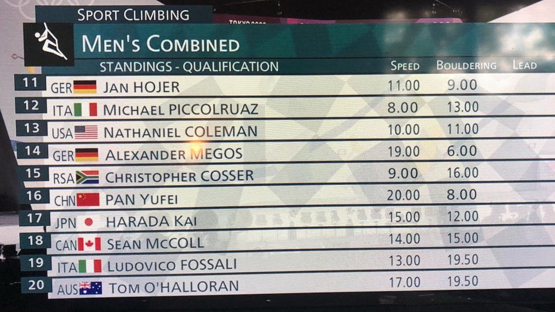 Nel nostro piccolo cercheremo di seguito di raccontarvi come sia andata questa giornata storica, in cui i 20 migliori climber al mondo (Jongwon Chon – KOR; Nathaniel Coleman – USA; Christopher Cosser – RSA; Colin Duffy – USA; Ludovico Fossali – ITA; Alberto Ginés López – ESP; Kai Harada – JPN; Jan Hojer – GER; Rishat Khaibullin – KAZ; Bassa Mawem – FRA; Mickael Mawem – FRA; Alexander Megos – GER; Sean McColl – CAN; Tomoa Narasaki – JPN; Adam Ondra – CZE; Tom O’Halloran – AUS; Yufei Pan – CHN; Michael Piccolruaz – ITA; Aleksei Rubtsov – RUS; Jakob Schubert – AUT) si sono sfidati nella Combinata Olimpica, affrontando in successione le discipline Speed, Boulder e Lead.