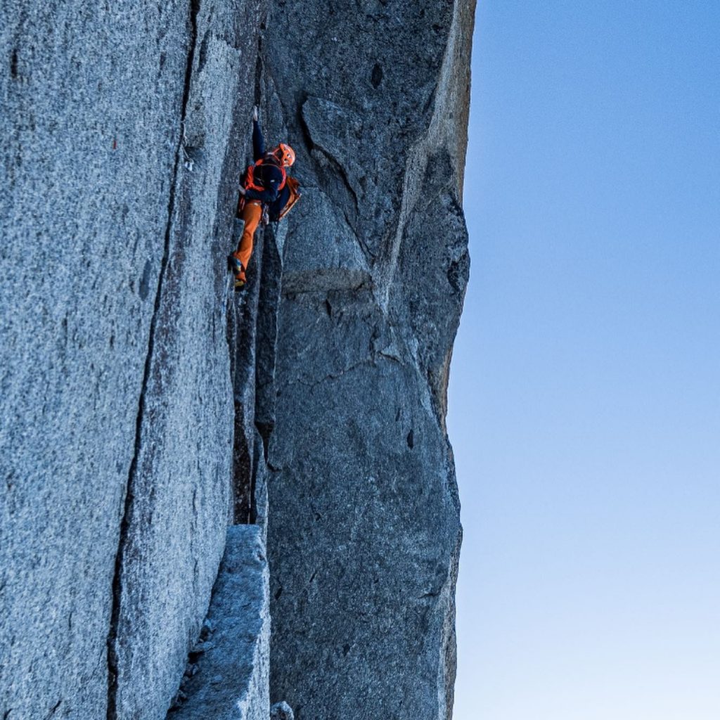 A chiudere il cerchio il Petit Dru, nel massiccio del Monte Bianco, dove in 1h43’35” ha stabilito il record di velocità lungo la Allain-Leininger (900m TD+), la prima via sulla montagna che fu aperta da Pierre Allain e Raymond Leininger nel 1935. Una salita decisa all’ultimo per sfruttare le buone condizioni meteo e della parete.
