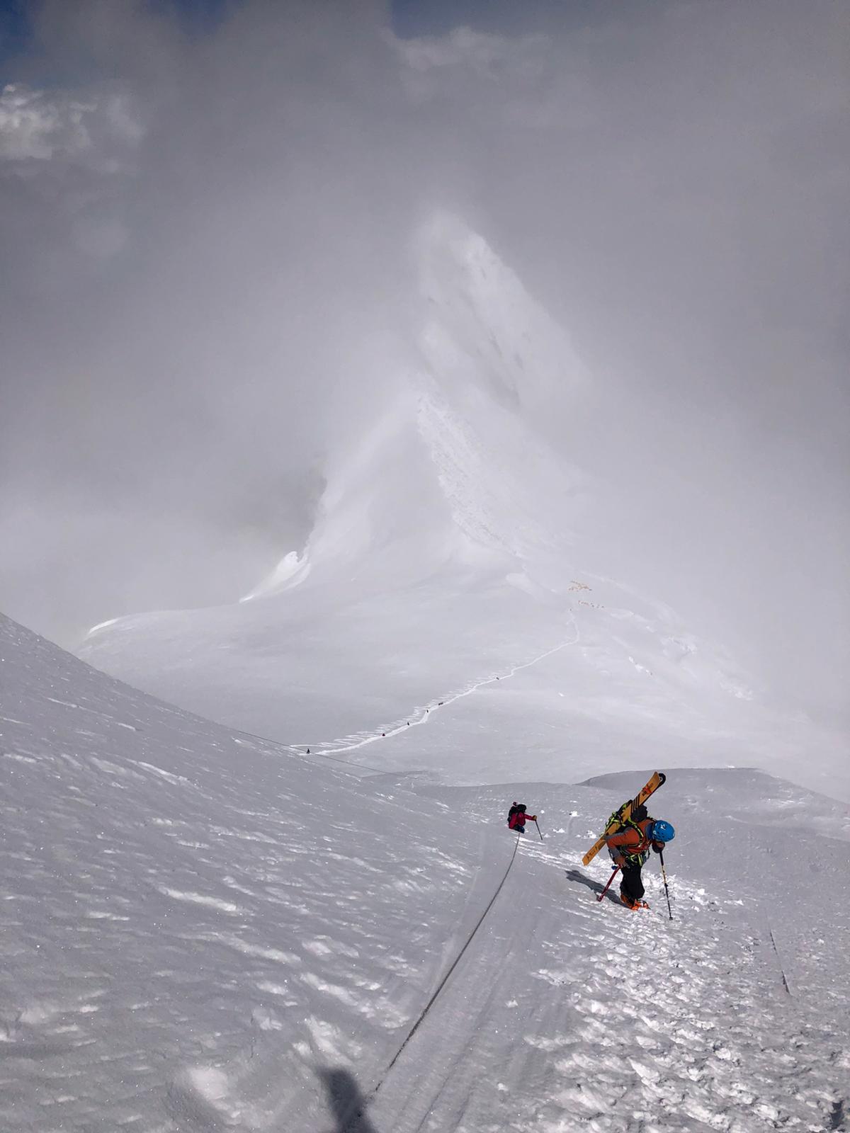 “Tutte le sfumature della neve. Dalla polvere a quella crostosa, dalla neve primaverile a quella dura. È stato incredibile. Anche ricercare linee di discesa diverse per bypassare i crepacci dove sarebbe stato necessario attaccarsi alla corda. Siamo riusciti a sciare tutto, tranne che per un paio di calate, con gli sci ai piedi, tra campo 2 e campo 1, dove si trova la seraccata.”