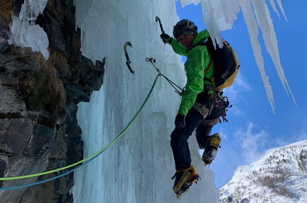 “La prima cosa da fare, se si vuole continuare con il ghiaccio, è scegliere la propria attrezzatura. Sul mercato esiste molto materiale valido, aggiornato e performante. Ovviamente, più questo è recente più ci supporta nella scalata. Il mio consiglio è quello di non andare troppo al risparmio, l’attrezzatura deve essere vista come un investimento che si fa una volta e dura molti anni scegliendo i materiali specifici. Rispetto al passato il mondo delle attrezzature da montagna si sta specializzando sempre più con la produzione di nuovi attrezzi che hanno una collocazione ben precisa. Nel caso del ghiaccio è positivo essere sempre aggiornati a riguardo.”