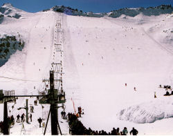 PASSO DEL TONALE, Brescia – Gli irriducibili dello sci aguzzino le antenne. Sul ghiacciaio Presena, sito a circa 3.000 metri di quota nel comprensorio Adamello Ski, si potrà sciare fino a domenica 16 luglio.