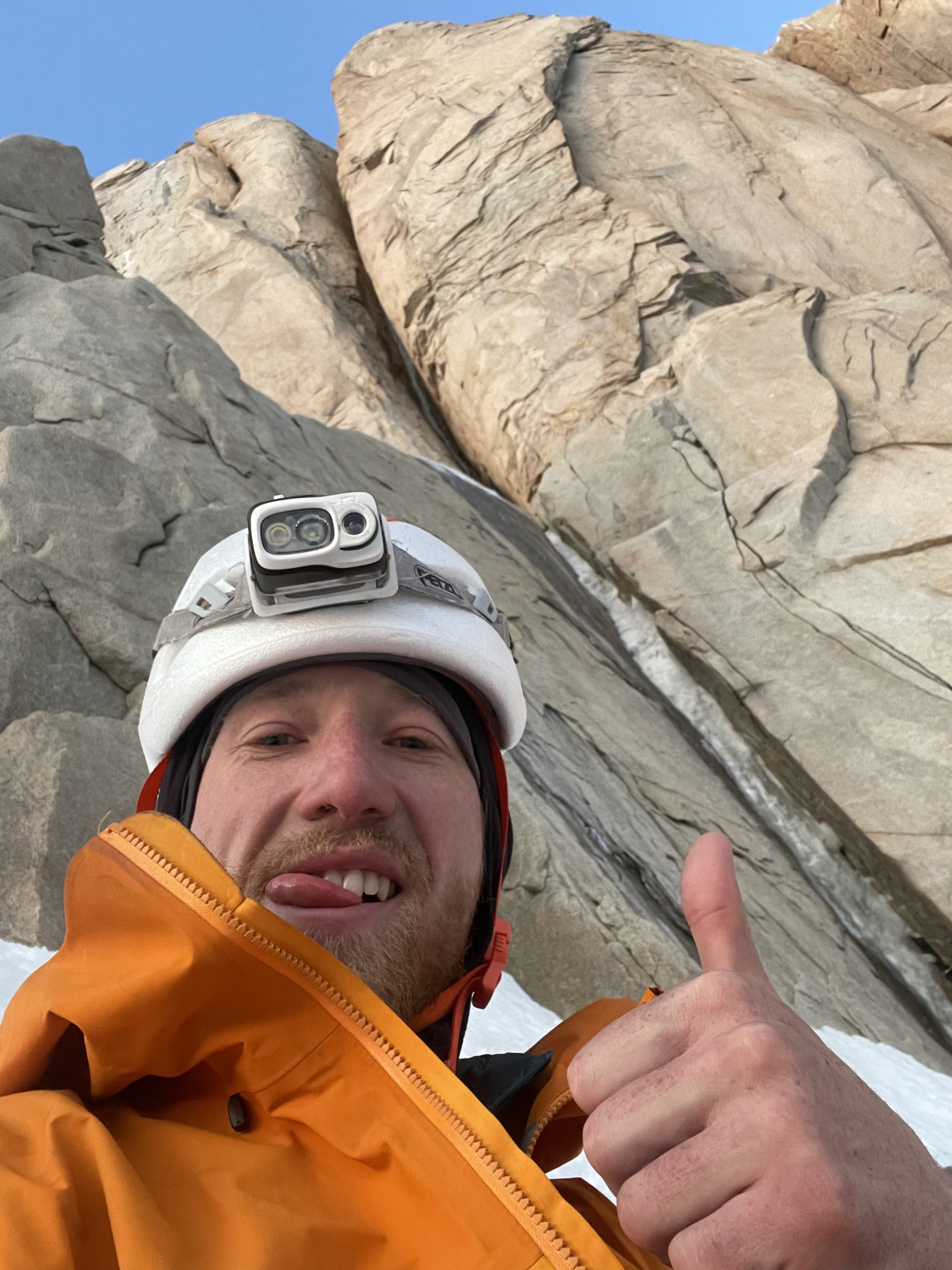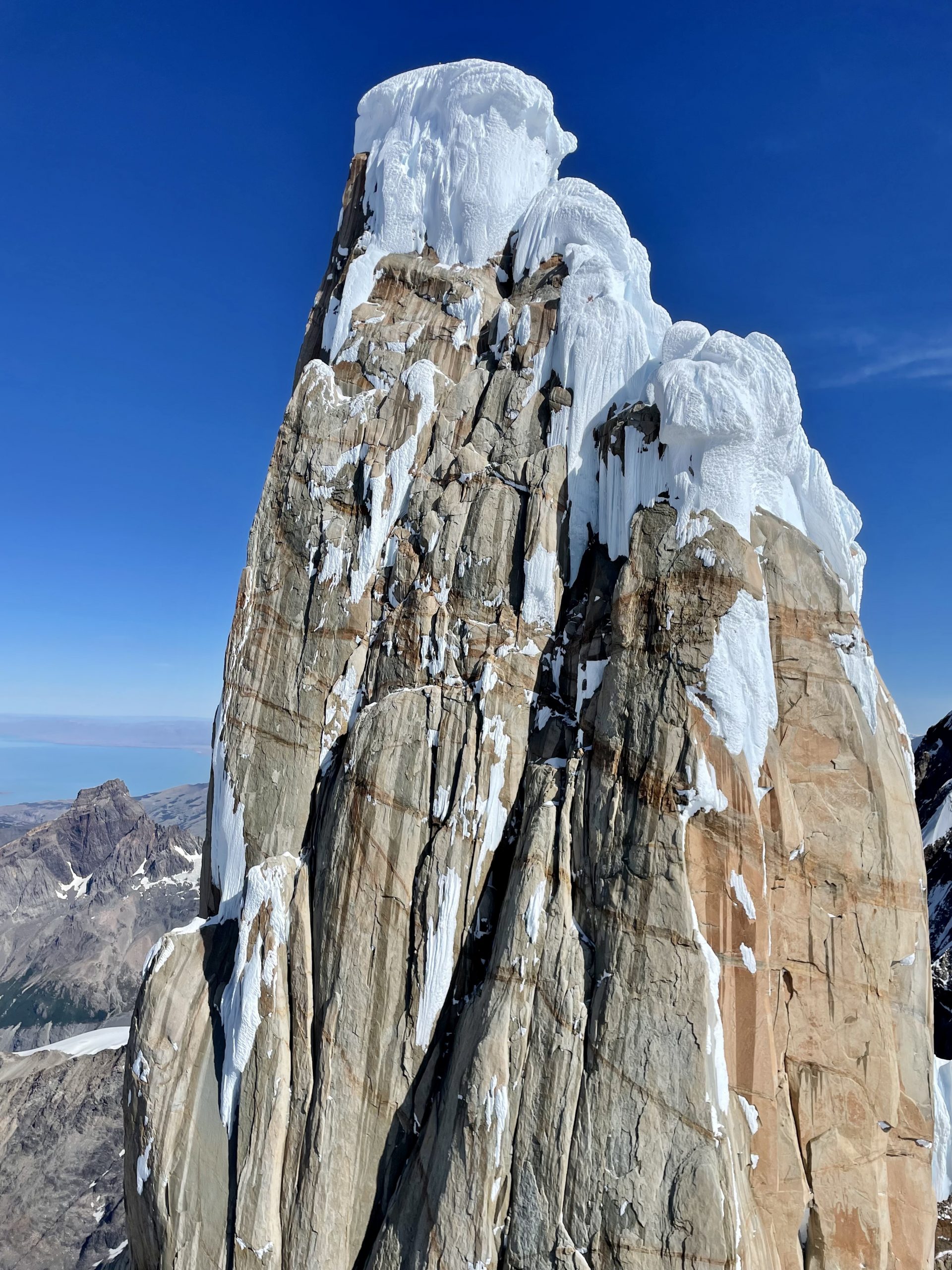 “È stata un’avventura meravigliosa, con molti errori nella ricerca del percorso e tante scoperte. Essere da soli, navigare nell’ignoto, è stato incredibile. Ho adorato i tiri su cui mi sono dovuto autoassicurare. Poi oltre, quando le difficoltà sono sembrate più docili e potevo arrampicare senza peso, mi sono goduto ogni singolo movimento. Davanti a me una vista grandiosa con la vasta calotta glaciale alla mia destra e il massiccio del Chalten a sinistra. Incredibile!”