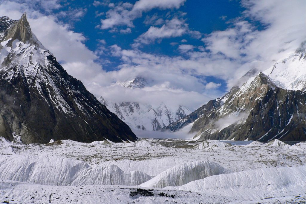 Bisogna essere discretamente allenati e saper gestire la quota, per molti giorni si cammina oltre i tremila metri sulle pietraie e sul ghiacciaio. Prima si costeggia il torrente Baltoro, poi si raggiunge l’immensa fronte dell’omonimo ghiacciaio. Oltre lo si segue fino a raggiungere il Circo Concordia. Qui si svela finalmente la piramide del K2 e non potrete fare altro che emozionarvi di fronte alla bellezza di quella piramide perfetta affiancata da Broad Peak, Gasherbrum I, Gasherbrum II e Gasherbrum IV. Un anfiteatro che parla di alpinismo d’altissima quota, di vite umane andate per un sogno, di fragilità e perfezione. Ma prima di giungere a questo punto avrete modo di ammirare le Torri di Trango e i Masherbrum. Insomma, se masticate un po’ di storia dell’alpinismo sarete ben consci di camminare gli stessi passi dei più grandi di sempre. Così fino ai piedi della seconda montagna della Terra. Qui sentirete la sua forza incombere su di voi, immaginando cosa possa voler dire sfidare i suoi ghiacci eterni.