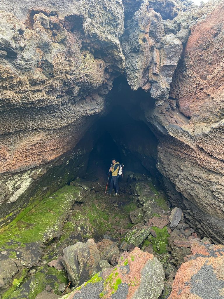 “Per prima cosa è necessario avere un buon allenamento di base. Un chilometro di cammino sulla lava, su questo particolare tipo di terreno roccioso, non è paragonabile a un chilometro percorso su un classico sentiero battuto. A volte per raggiungere una grotta sono necessari 10/15 km di cammino, solo di andata. Chi non è allenato per questo genere di terreno rischia di farsi male, anche semplicemente camminando. Secondo punto è, una volta raggiunta una cavità, come si affronta la discesa. Né io né Paolo siamo speleologi, ma abbiamo fatto dei corsi di arrampicata, abbiamo approcciato con persone più esperte in materia, apprendendo tecniche anche basilari che ci consentono di entrare in grotta con prudenza e responsabilità. Con questo intendo dire che siamo i primi a fermarci se notiamo che il rischio sia troppo elevato per le nostre capacità. Talvolta ci si può imbattere in pareti instabili, con alto rischio di crolli. In questi casi evitiamo proprio di scendere. L’esplorazione è bella ma è anche bello poter tornare in superficie e raccontarla.”