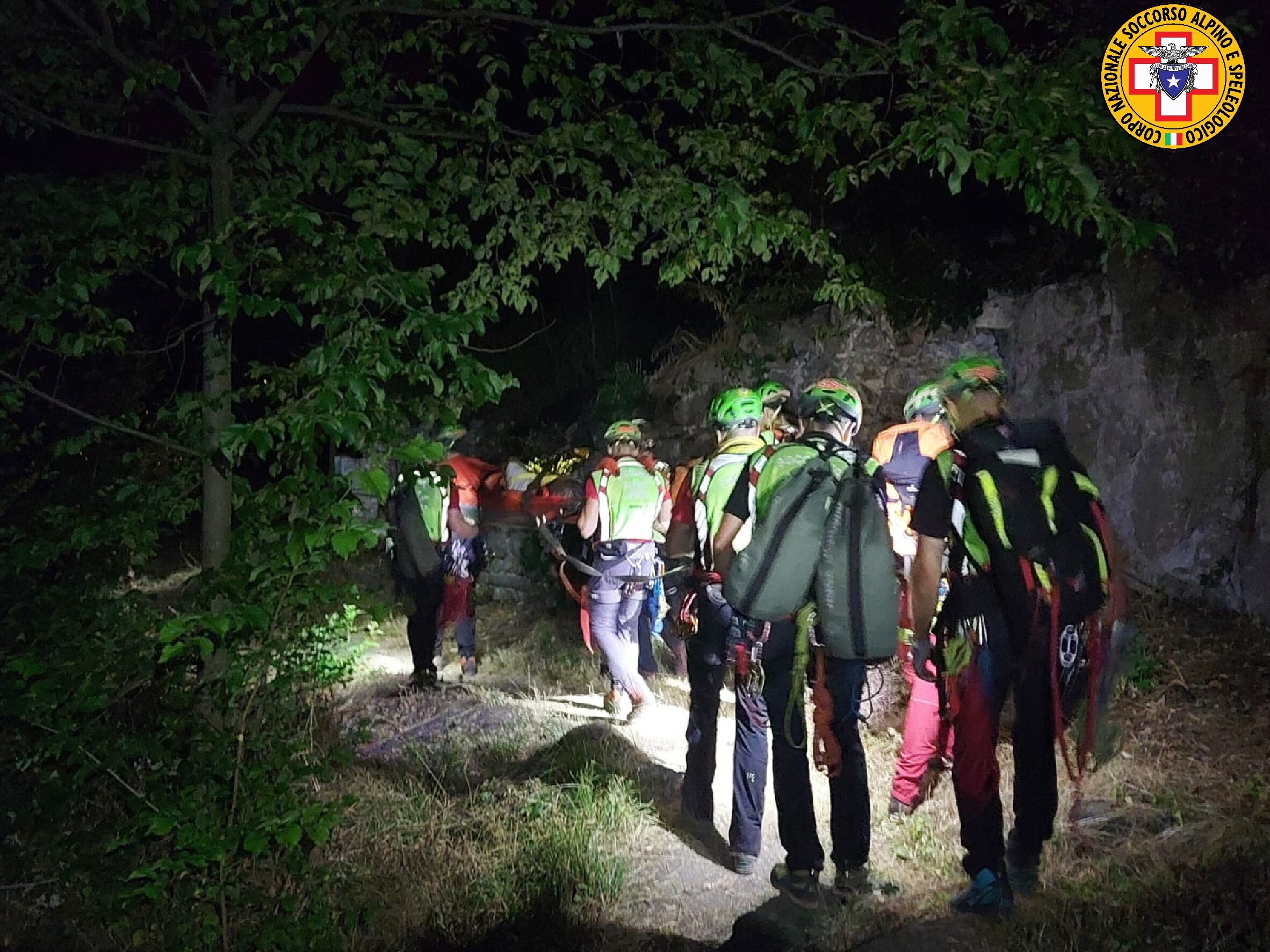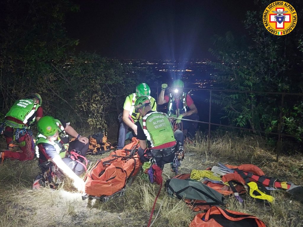 Una decina di soccorritori sono saliti in cima alla parete a piedi trasportando barella e attrezzatura e, dopo aver allestito le calate sulla verticale, hanno fatto scendere di una ventina di metri un tecnico e un’infermiera della Stazione, che hanno prestato le prime cure all’uomo. Una volta immobilizzato e imbarellato, l’infortunato è stato sollevato verso l’alto, fatto uscire dalla via e trasportato a spalla lungo il sentiero di rientro, poco meno di un chilometro, fino all’ambulanza, cui è stato affidato per essere condotto all’ospedale di Abano Terme.
