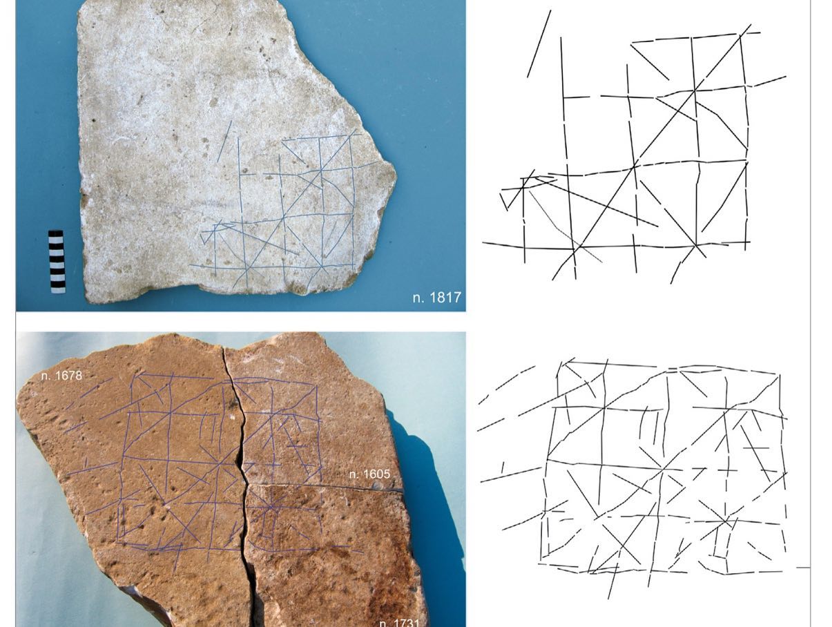 Se state immaginando una classica scacchiera composta da quadratini bianchi e neri, sappiate che non si tratta di quel genere di scacchiera. Si tratta di “un disco circolare, verosimilmente uno scarto di produzione di pietra ollare, sul quale sono presenti dei solchi che formano geometrie di quadrati e diagonali” che non è ancora chiaro a quale gioco potesse servire.