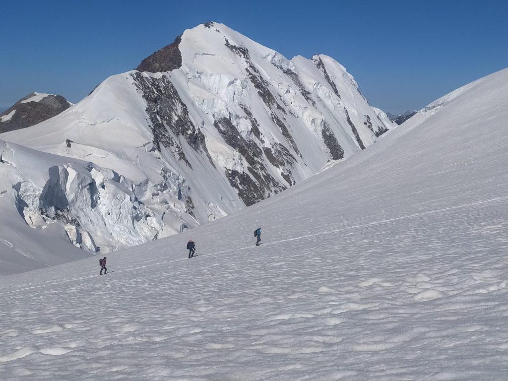 Avere un ghiacciaio “nudo”, senza la copertura che fino all’anno scorso in questi giorni di luglio ci permetteva di scendere tranquillamente con gli sci dalla Margherita alla Gnifetti mentre ora non è fattibile, ci mostra com’è fatto “sotto” un ghiacciaio e ci fa comprendere cosa serve legarsi a una corda anche quando ci sembra tutto “liscio” e “facile”. Paradossalmente, per chi non è mai stato su un ghiacciaio la salita di quest’anno è molto più formativa rispetto a quella dell’anno scorso.