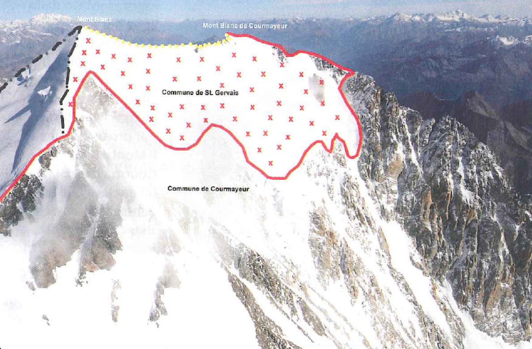 Il Monte Bianco si trova sul confine tra Italia e Francia. Meno pacifica è l’attribuzione della cima della montagna: per i francesi è loro, per gli italiani è italo-francese.