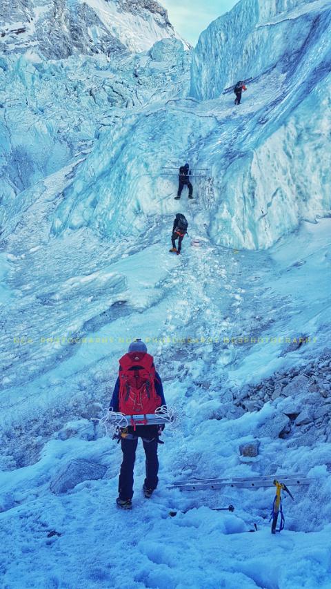 Proprio lì, alle 6.35 di mattina del 18 aprile 2014, è partita la valanga che ha travolto e ucciso sedici Sherpa, anch’essi impegnati nel trasporto di materiali verso la parte alta della via normale nepalese. Per minimizzare i rischi, traversando la zona pericolosa nelle ore più fredde, le corvée di portatori carichi lasciano normalmente il campo base tra l’1 e le 2 del mattino.